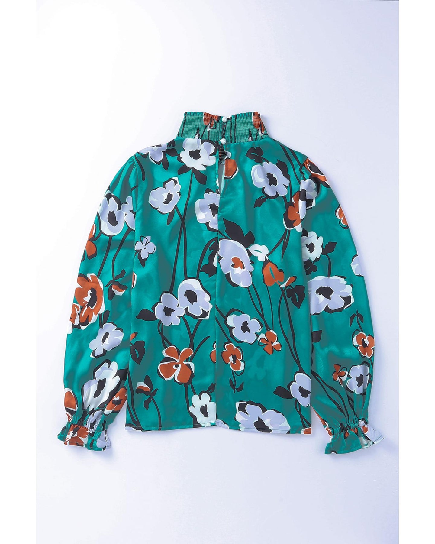 - Floral Print Smocked Mock Neck Blouse