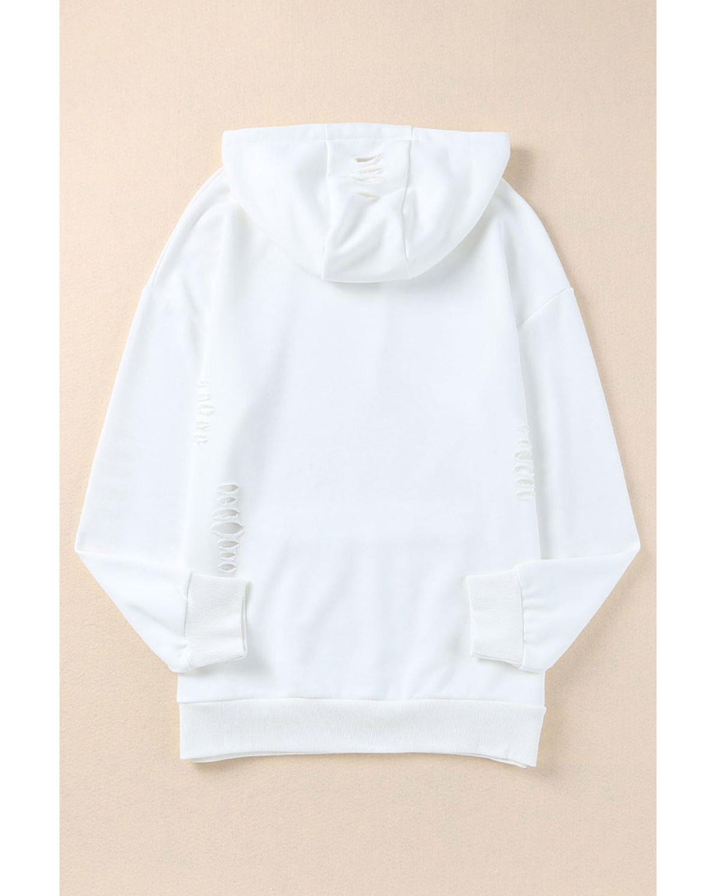 Azura Exchange Ripped Hooded Sweatshirt with Kangaroo Pocket - M