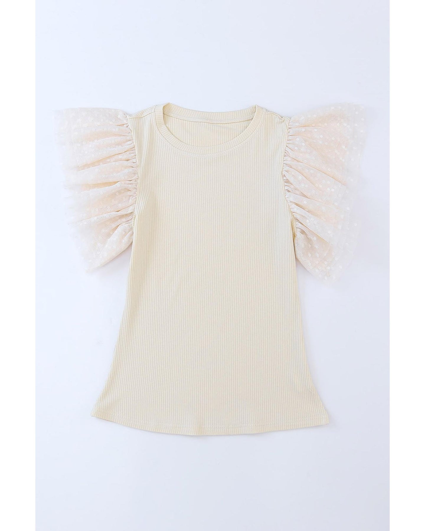 Azura Exchange Ruffle Sleeve Ribbed Knit Top - S
