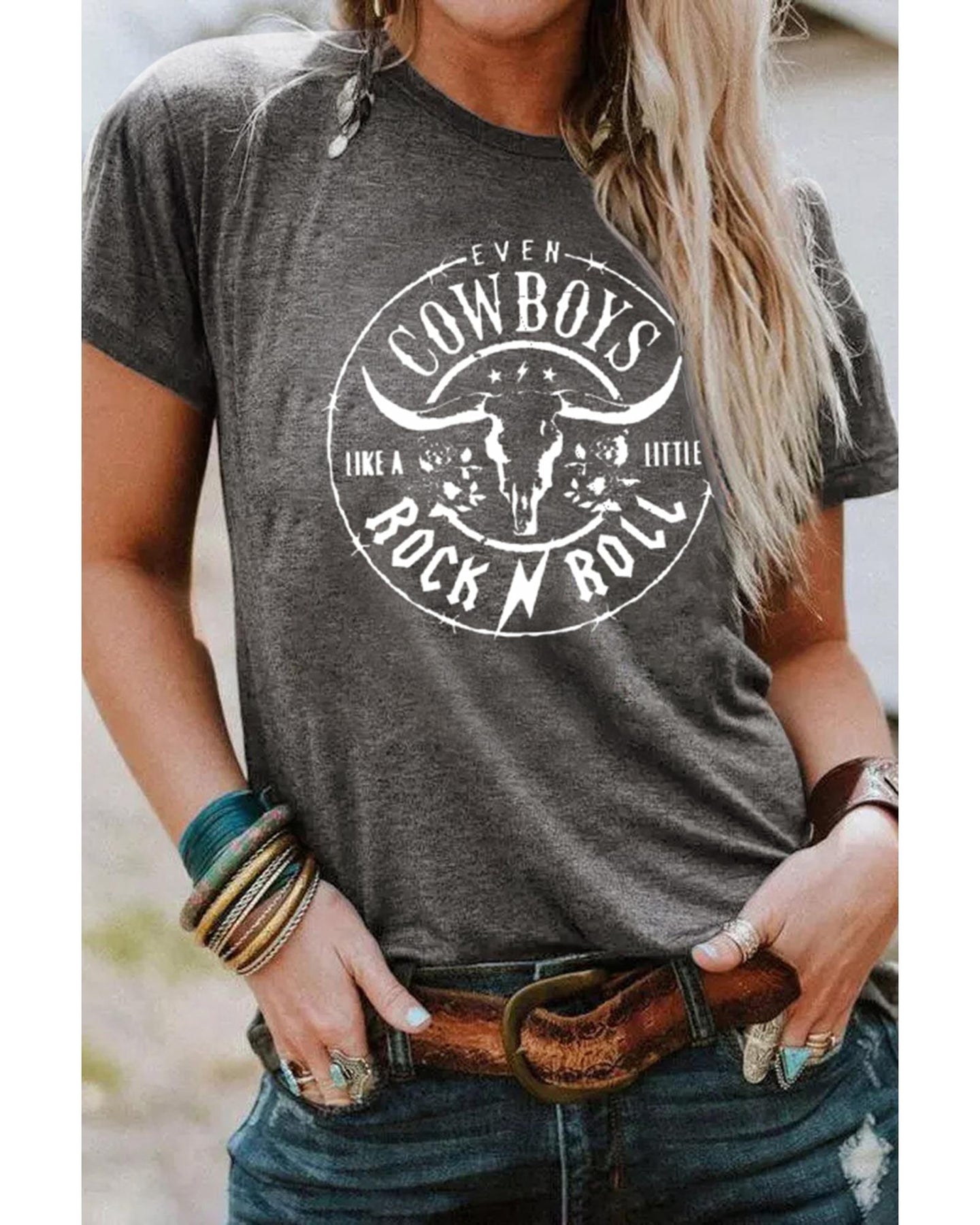 Azura Exchange Steer Head Pattern Print Short Sleeve Graphic Tee - L
