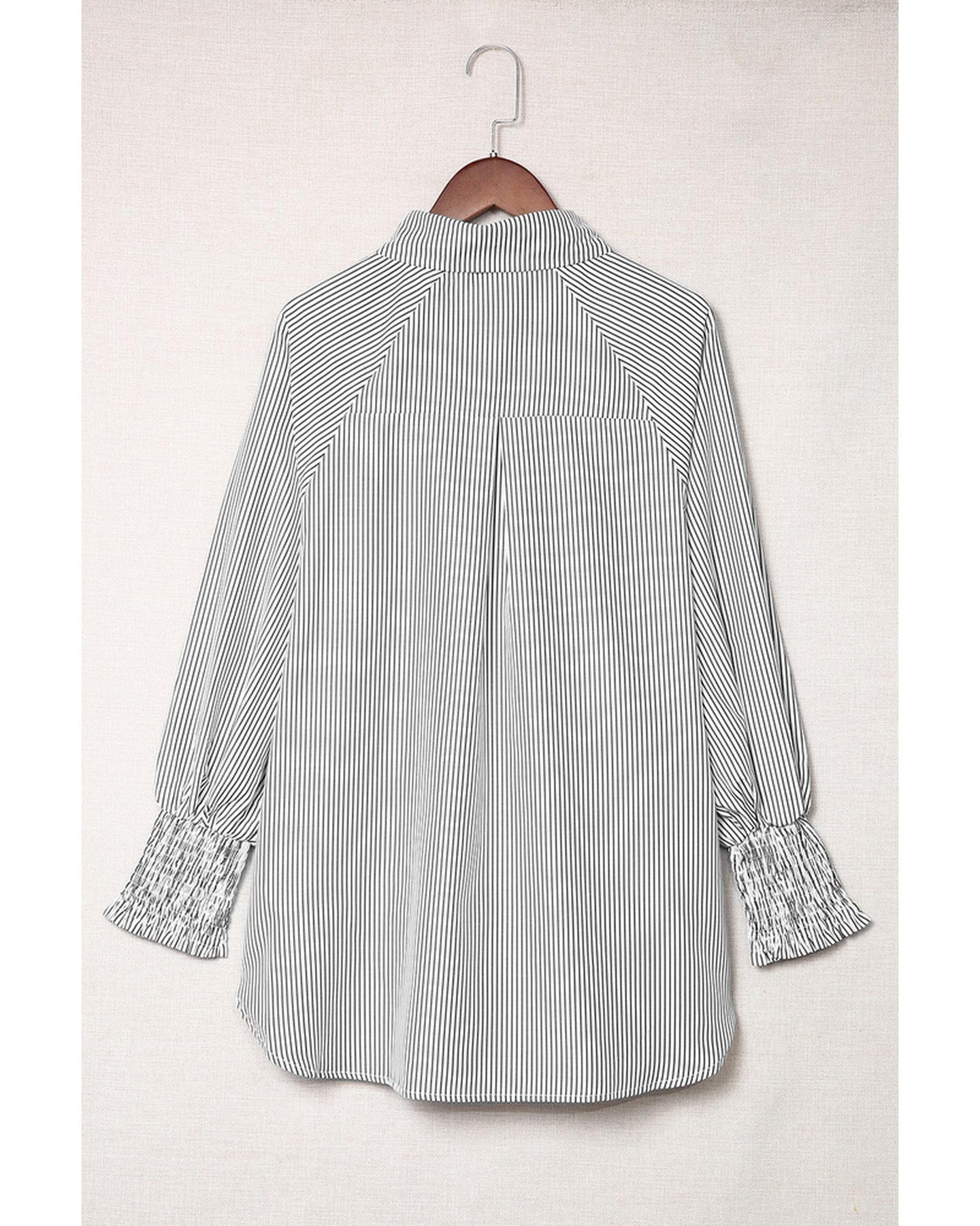 Azura Exchange Striped Boyfriend Shirt with Smocked Cuffs and Pocket - M
