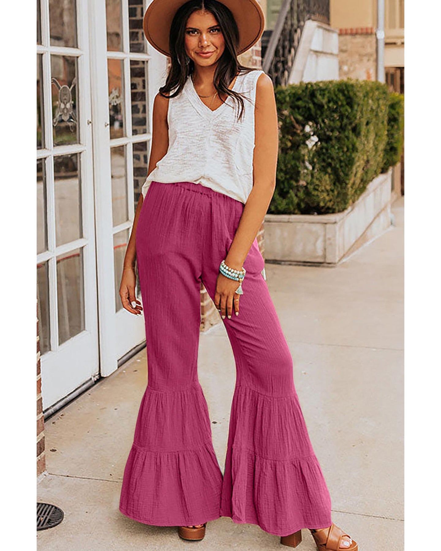 - Ruffled bell bottom for added style
