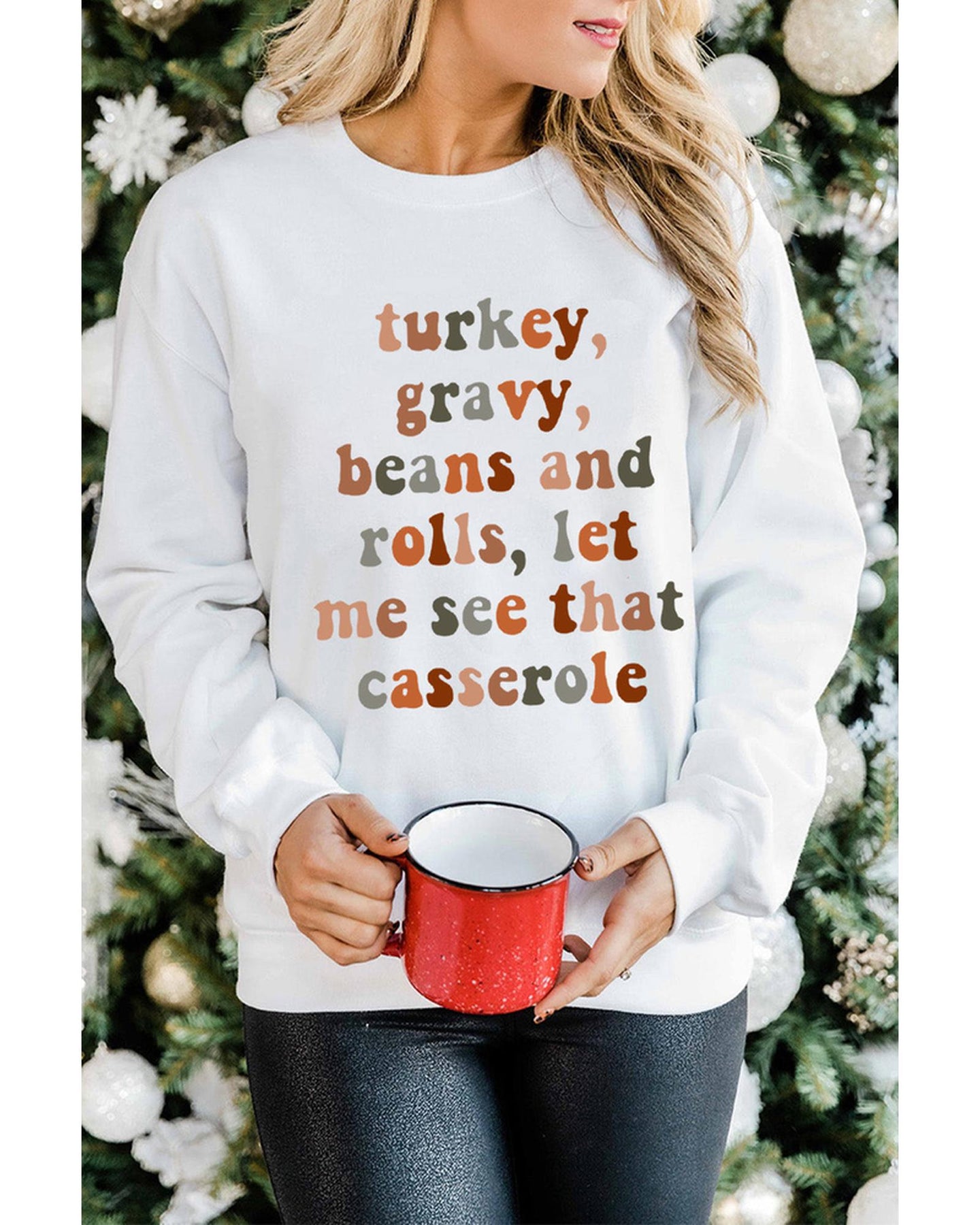 - Stylish and cozy Thanksgiving Letter Graphic Print Long Sleeve Sweatshirt