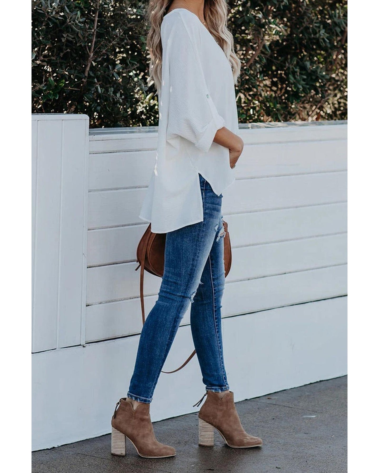 - Womens V Neck 3/4 Sleeve High Low Hem Shirt