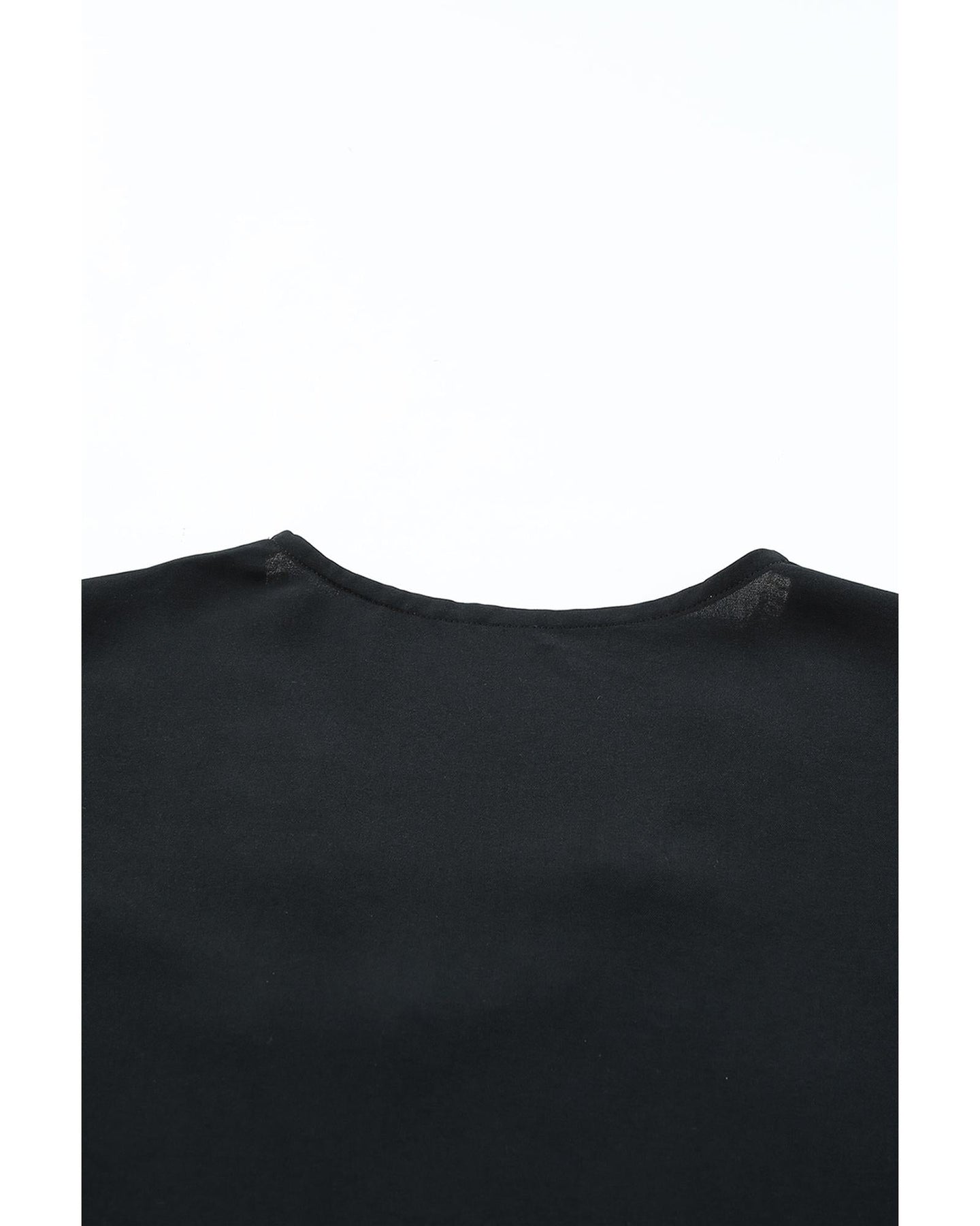- Elegant Lace Trim V Neck Short Sleeve Blouse