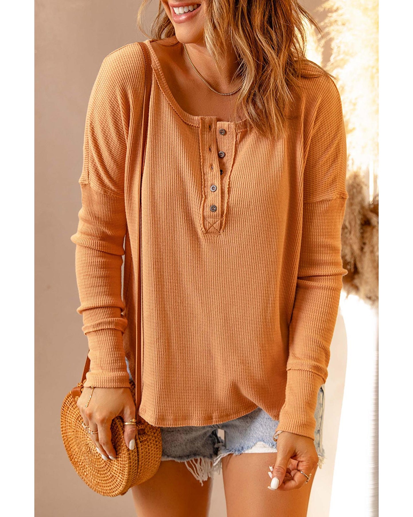 - Casual yet chic Henley neckline