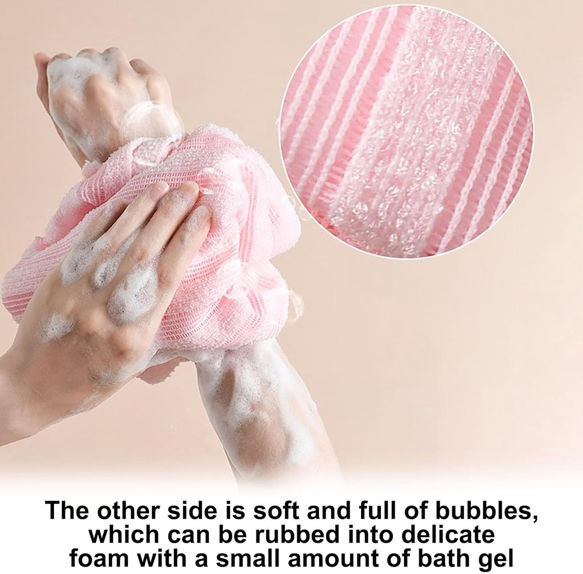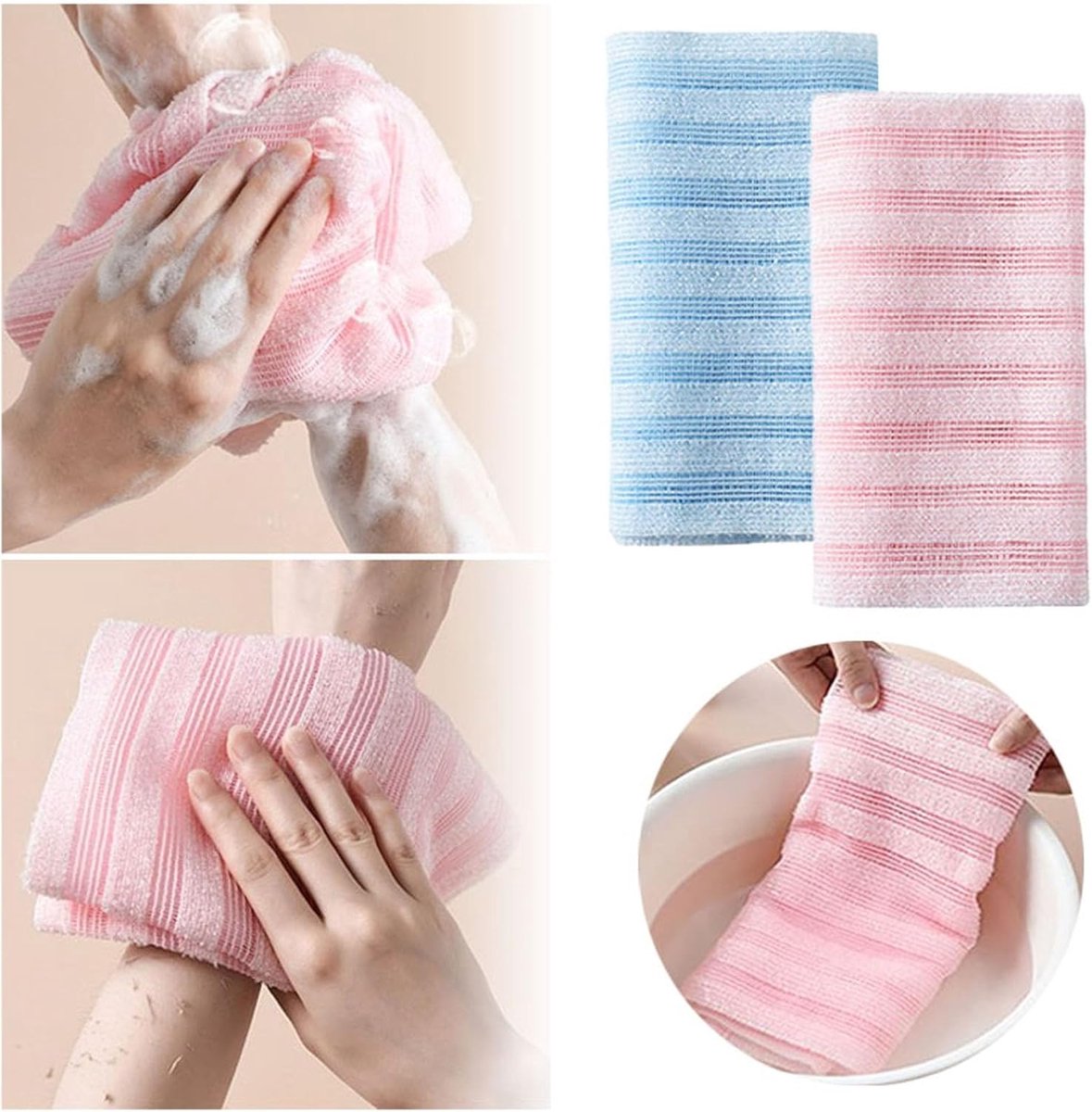 This bath towel dries quickly, preventing bacteria growth and giving you a fresh and clean experience every time. Exfoliating Rub Cloth: Designed for a deep clean, this long towel makes it easy to exfoliate your back and other body parts, enhancing your bathing experience. Foaming Bath Sponge: Thanks to its long, hanging design, this foaming sponge is perfect for exfoliating your back and provides a deep clean. Easy to Use: The design makes for easy handling and storage. Simply hang it up after use and it will dry quickly for your next shower. Bathroom Essentials: Made of soft polyester, this long shower towel is comfortable to use, making it an essential accessory for your bath ritual. Show More