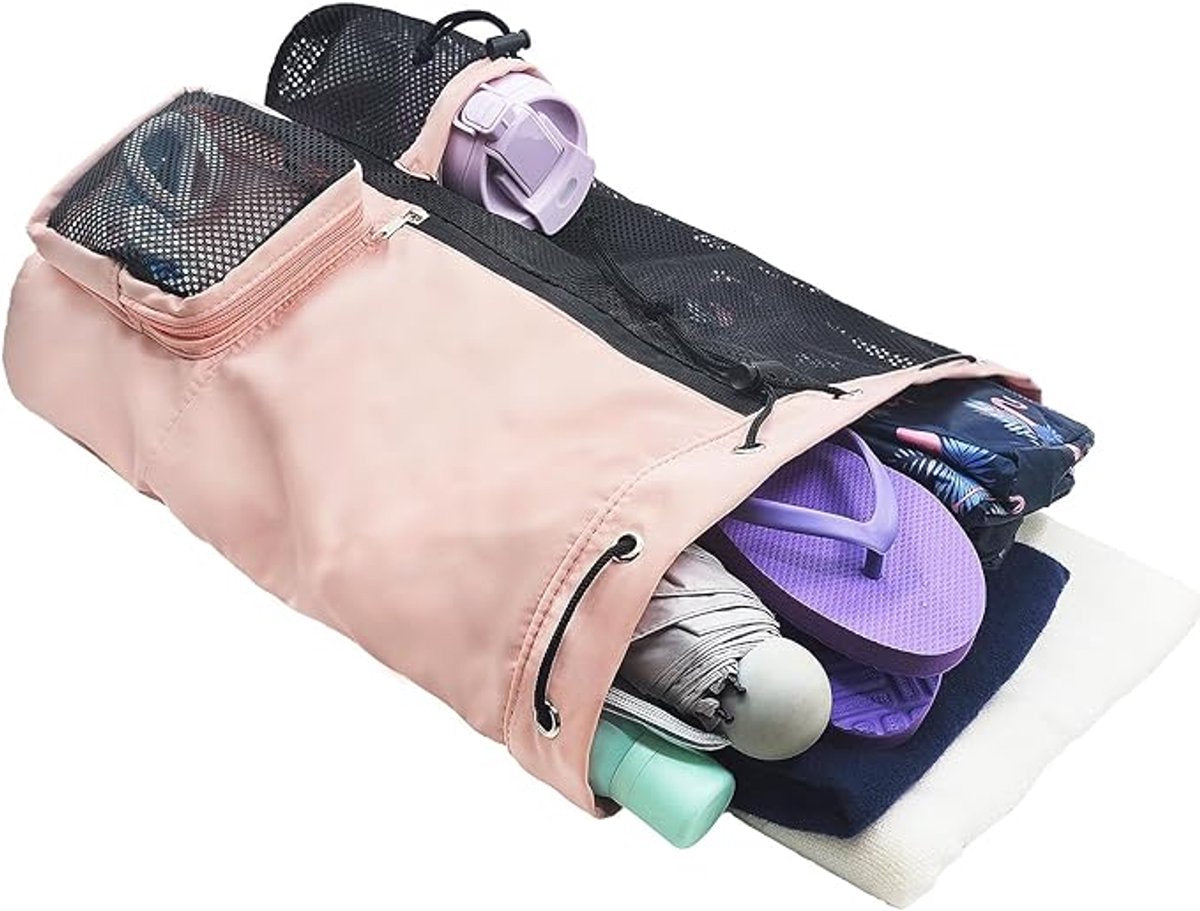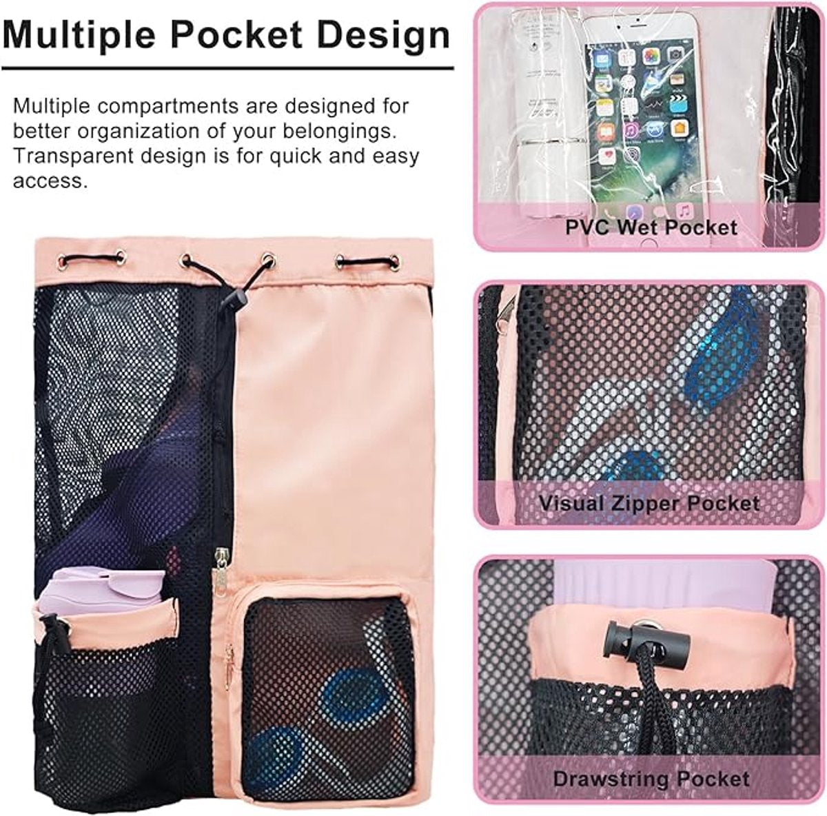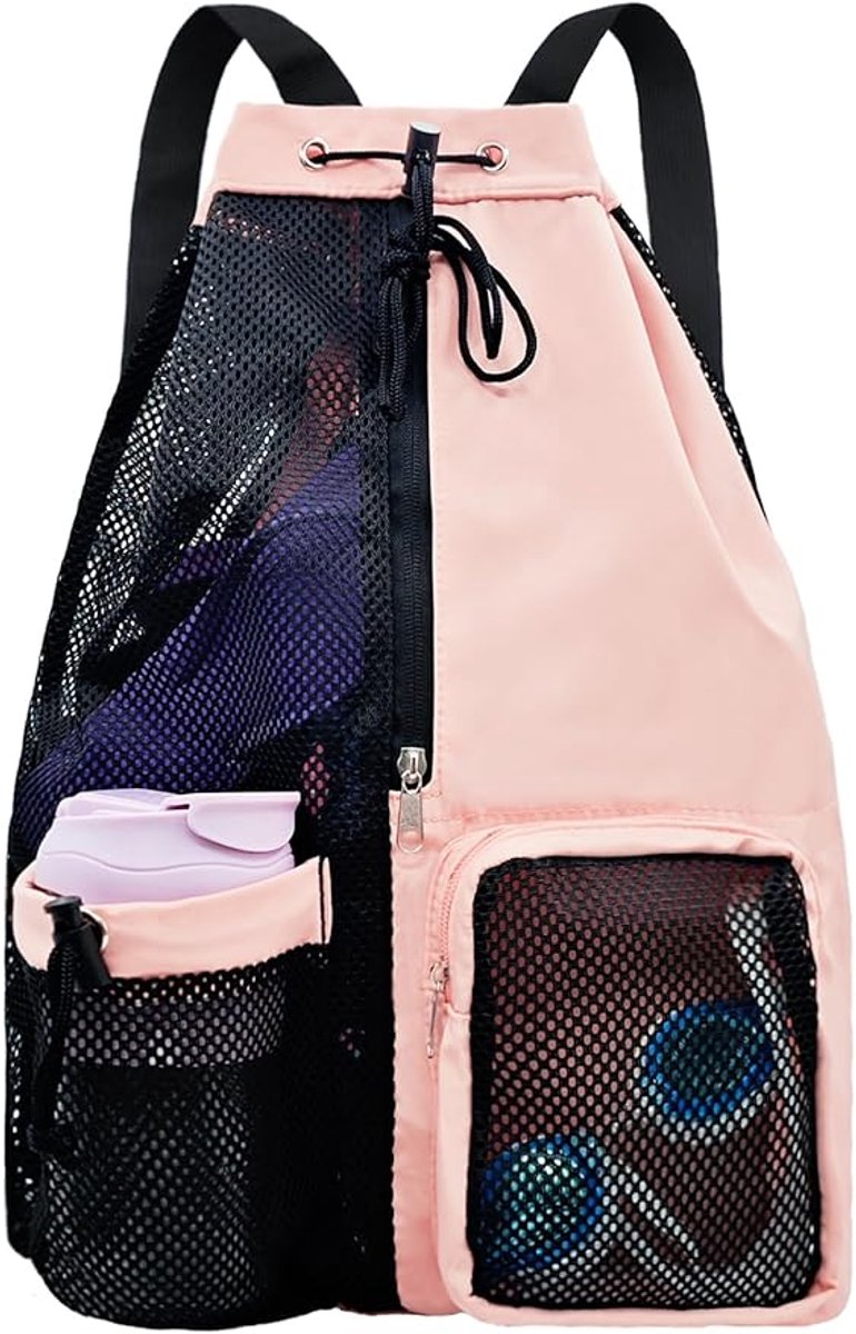 Premium Materials: Made of high-quality nylon and polyester, this tear-resistant, waterproof, and machine-washable drawstring swim backpack is convenient, durable, and easy to clean, making it ideal for most workout needs. Large Capacity: The backpack measures 30*15*45cm and weighs 0.25kg. The large mesh design allows water to drain quickly and is highly breathable, reducing unpleasant odors. Side Storage: The drawstring swim bag features a wet/dry pocket and a waterproof zipper to keep your phone, wallet, and other valuables safely stored during exercise. Multiple Compartments: The main compartment can be used to store clothes, towels, shoes, and sports equipment. In addition to the wet/dry pocket, there is a drawstring pocket for storing a water bottle and a zippered pocket for your swim cap, goggles, etc. Perfect Choice: This mesh drawstring bag is perfect for swimming, fitness, workouts, the beach, sports, hiking, camping, and more. It also makes a great gift for family, friends, and workout buddies. Show more