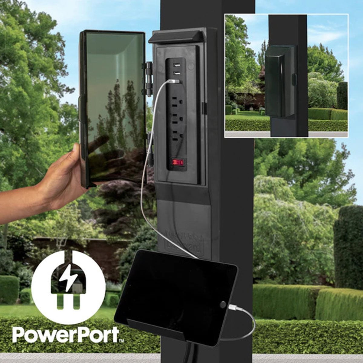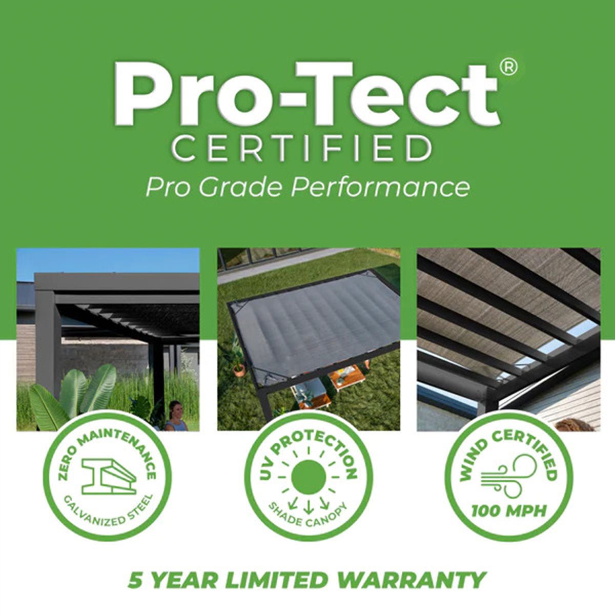 The Trenton Steel Pergola 14ft x 10ft is Backyard Discovery’s solution to all weather, all season functionality and beauty in a Stylish Black Finish. Our powder coated, galvanized steel construction makes the Trenton pergola maintenance free and rust resistant while offering protection against chipping, scratching, corrosion, and UV harm. With an integrated full shade canopy included; The Trenton Pergola is a minimalist designed outdoor structure design with modern, durable steel composition. The exclusive PowerPort™ has 3 USB ports and 3 electrical outlets to use for powering outdoor lights and electronics as well as charging your devices.
