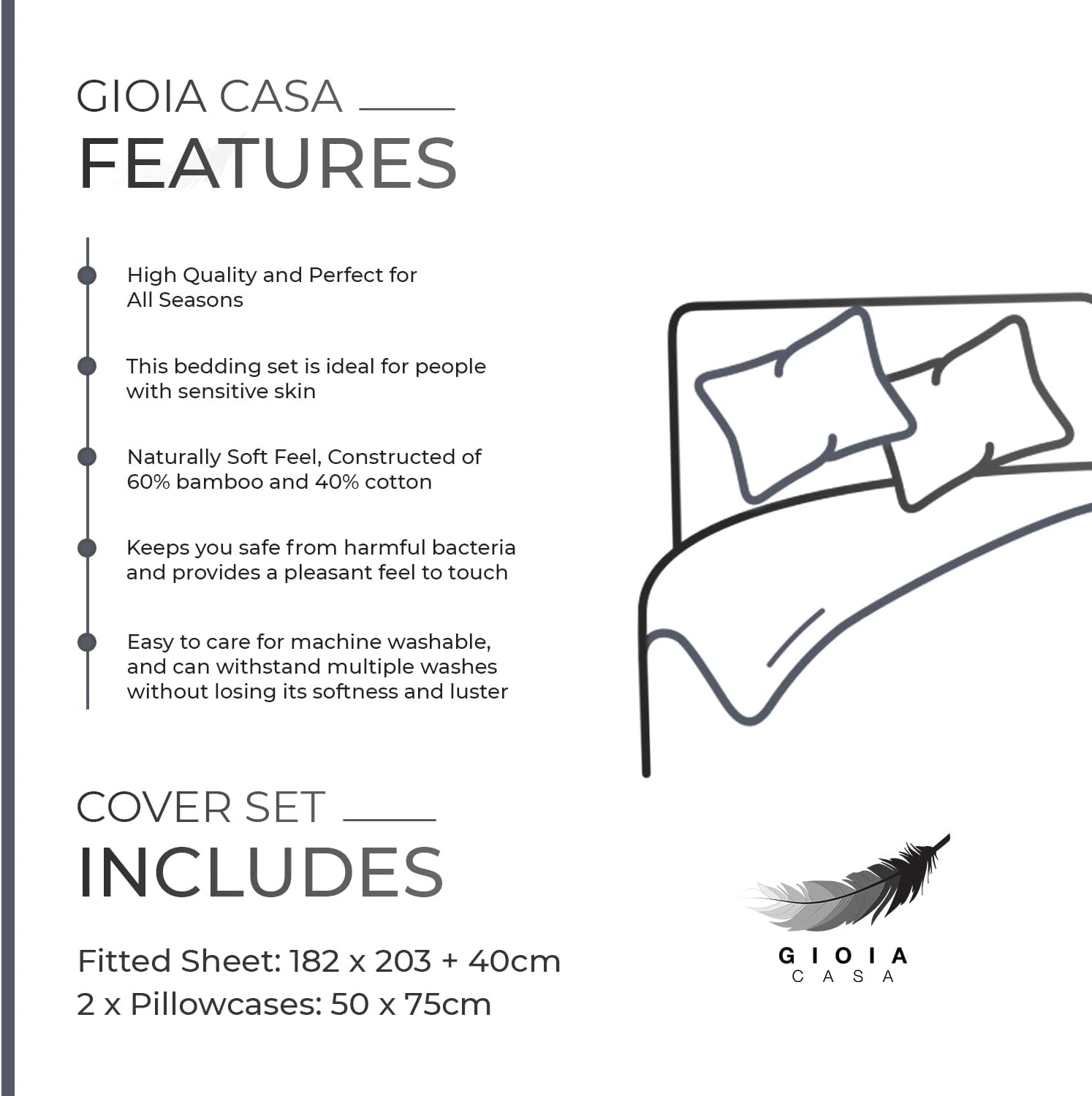 • Fitted Sheet: Dimensions vary; includes 2 x pillowcases