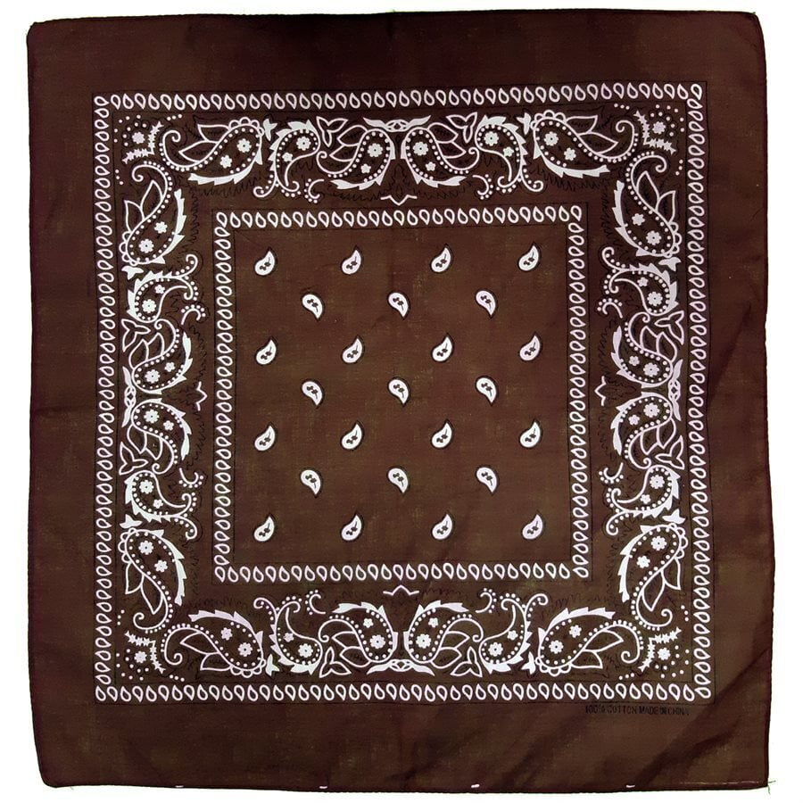 BANDANA Paisley 100% COTTON Head Wrap Durag Bandanna Summer Biker Scarf Mask - Brown