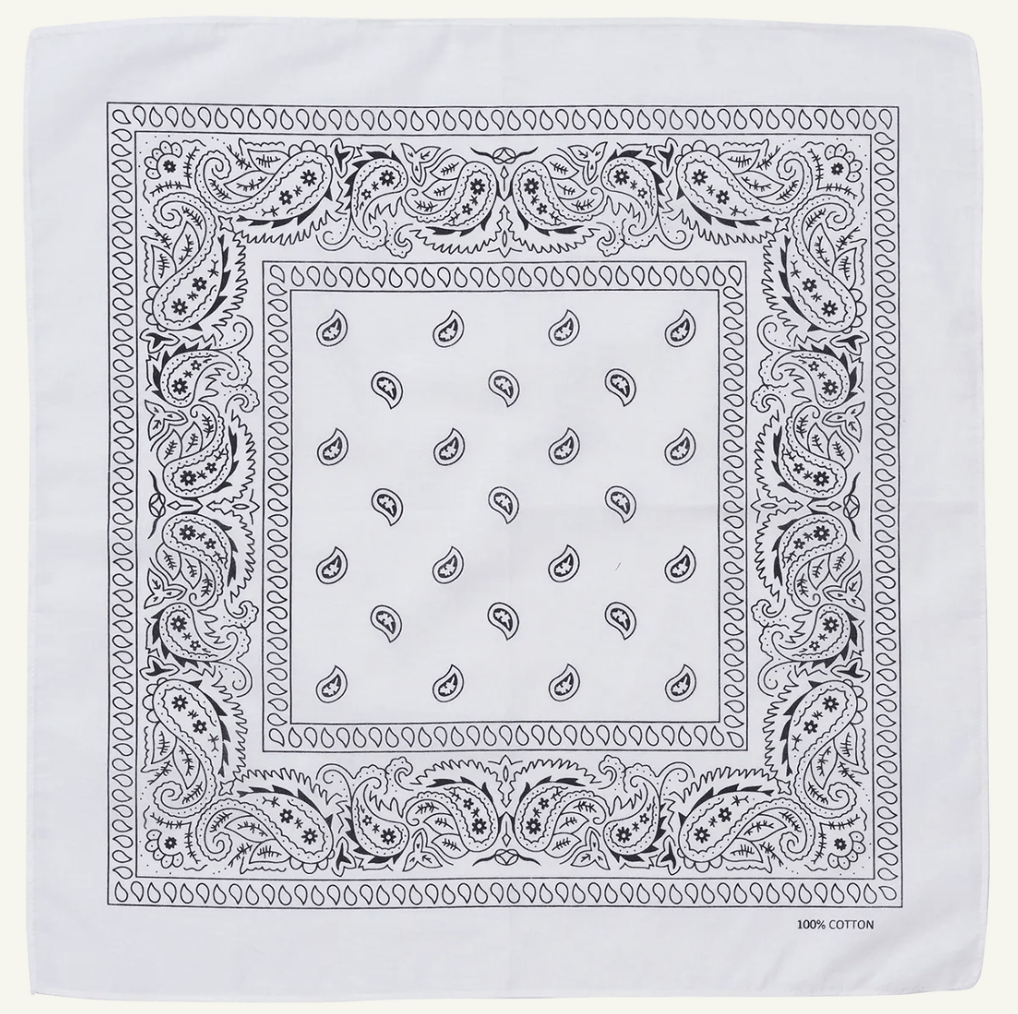 BANDANA Paisley 100% COTTON Head Wrap Durag Bandanna Summer Biker Scarf Mask - White