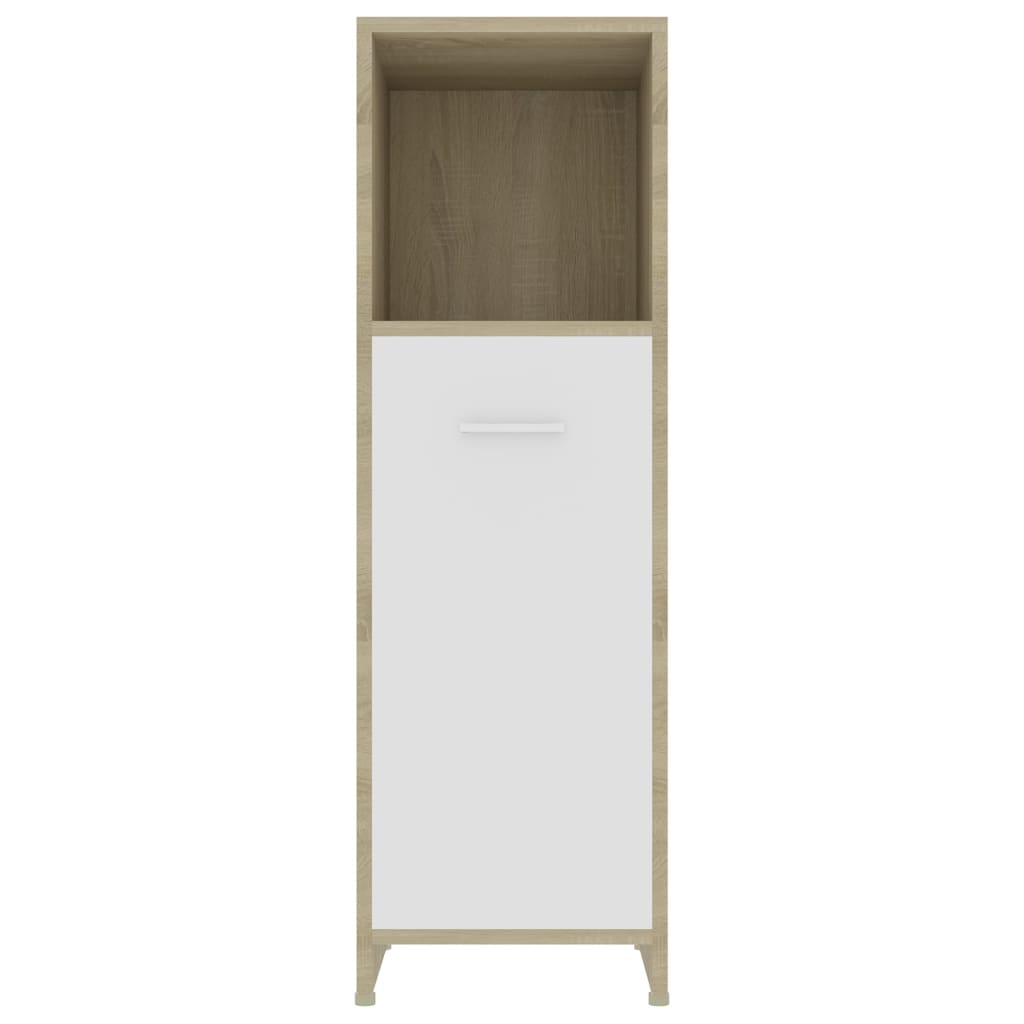 With this bathroom cabinet, you can create additional storage space for your bathroom with a striking, tidy appearance. The clean lines and sleek design blend into your bathroom perfectly. This chic cabinet is made of engineered wood, making it sturdy and stable. The laundry room rack has 3 compartments and 1 door, offering various storage options and extra space to store items in your bathroom. There is a handle on door for better opening and closing. The cupboard is easy to clean with a damp cloth.