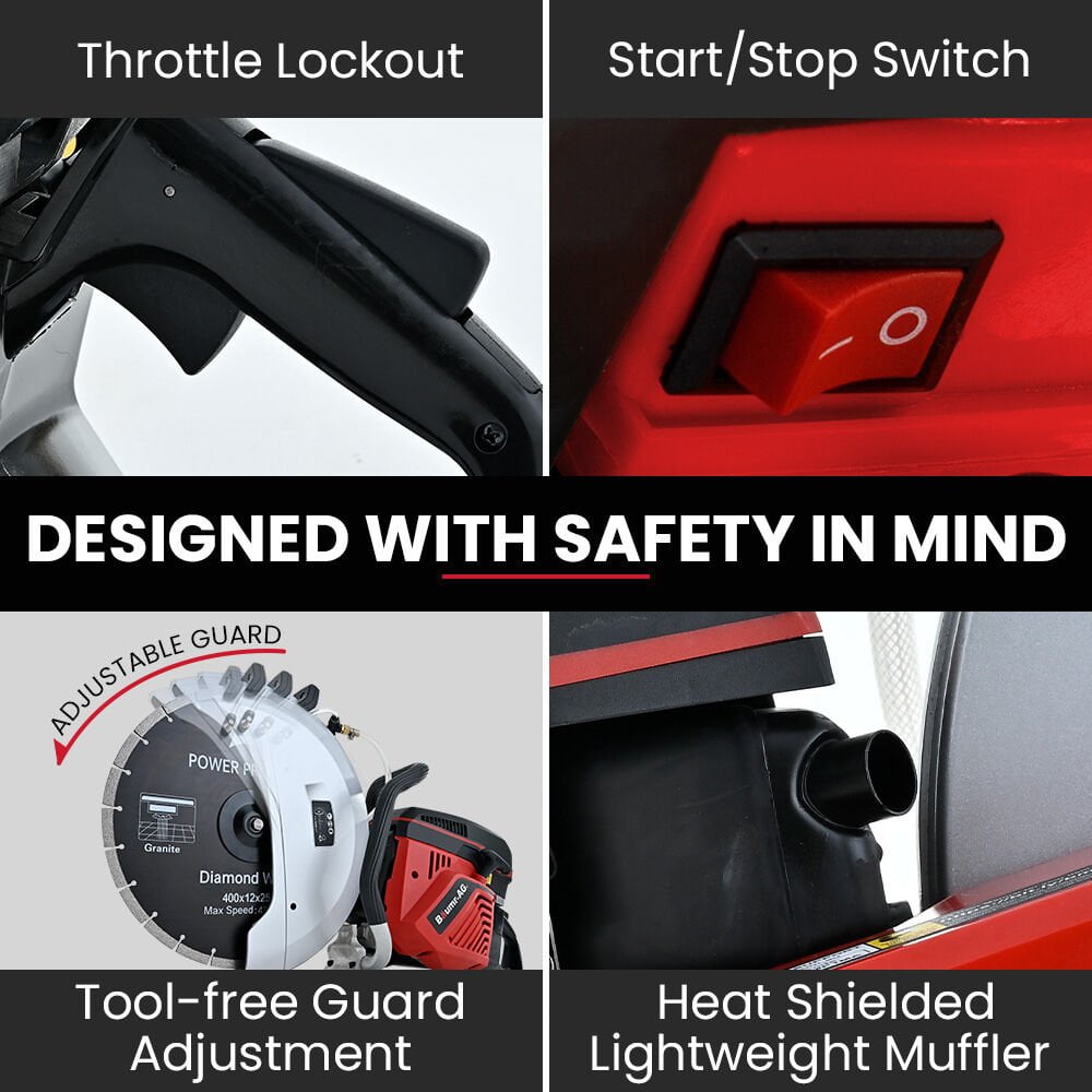 - Superior Cutting Depth: 400mm (16') diamond cutting wheel achieves up to 145mm depth.
