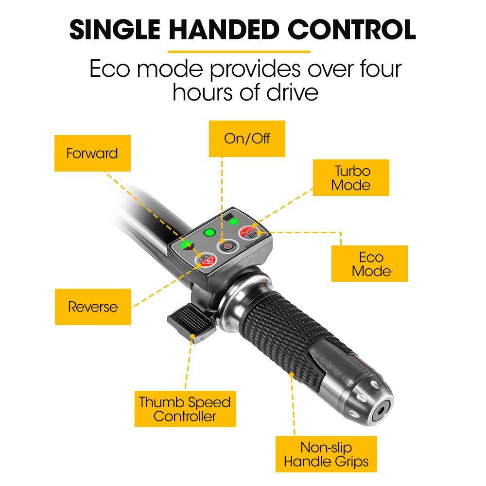 Enjoy the convenience of the 40V/6Ah removable Li-ion battery, providing up to 5 hours of efficient operation on a single charge. The brushless motor delivers incredible torque, while the copper rotor and stator ensure reliable performance. Plus, you can remove the battery for an on-board or off-board charging time of just 3 hours, you'll experience minimal downtime.
