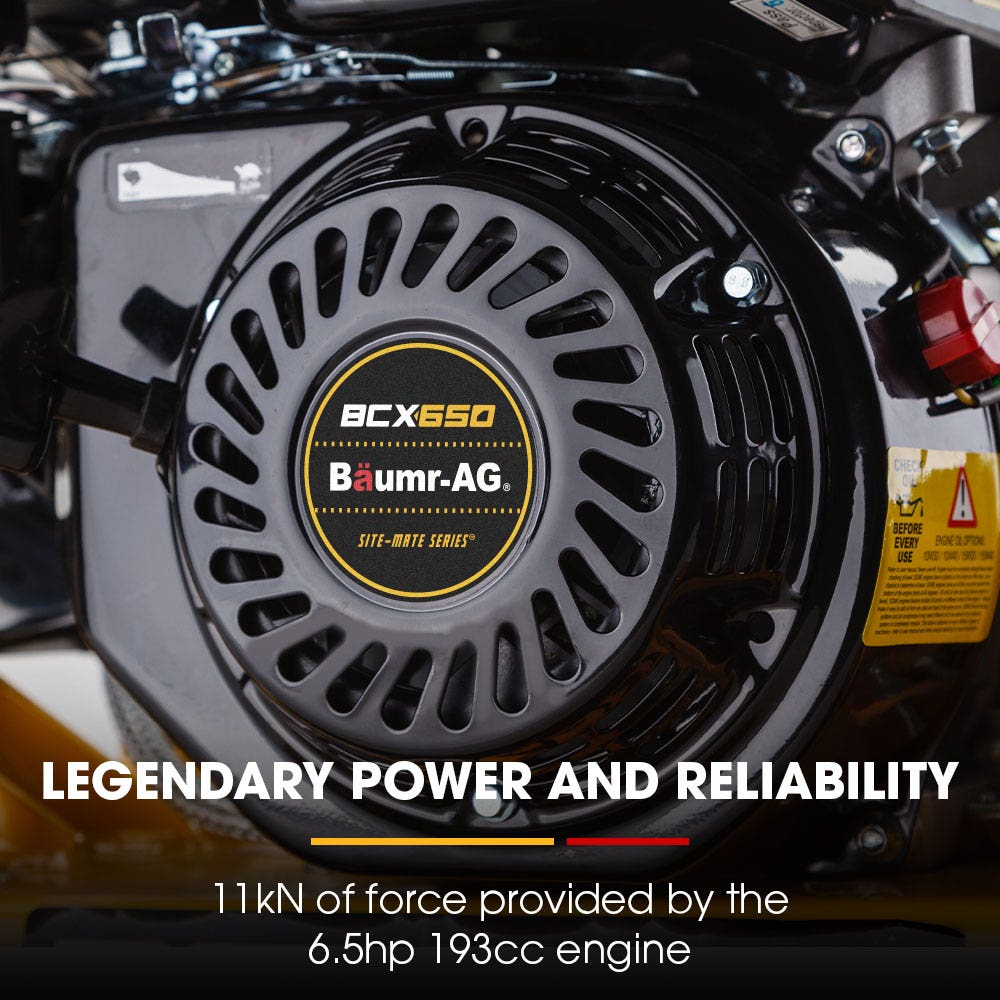 Powered by a proven 6.5HP 193cc engine, the BCX-650 drives firm, even compaction for both trade professionals and serious DIY users. A controlled 15m/min walk speed allows steady progress without sacrificing accuracy, while the large 3.6L fuel tank supports longer run times with fewer refuelling interruptions.