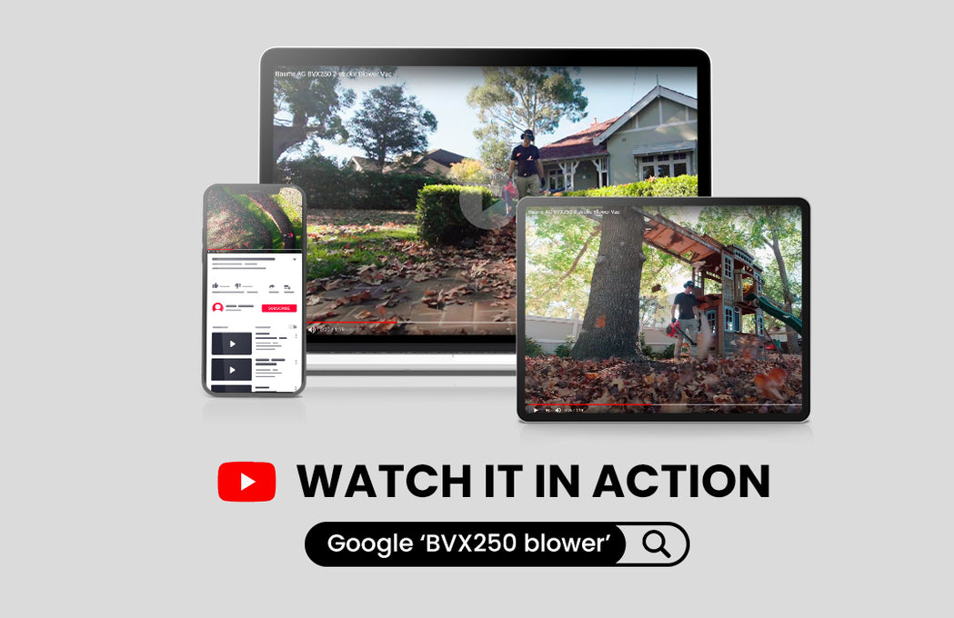 The Baumr-AG BVX250 3in1 2-stroke leaf blower, vacuum and mulcher is an incredibly versatile unit that will truly make your gardening duties something to look forward to. With a perfect blend of power, functionality and ergonomics you can now tidy up your lawn in the most efficient way by blowing debris out of the way, and vacuuming it up for composting. All of this of course is cordless, without the inconvenience of dealing with a power cord! So, start enjoying more of your spare time in a yard that will be the envy of your friends and neighbours!