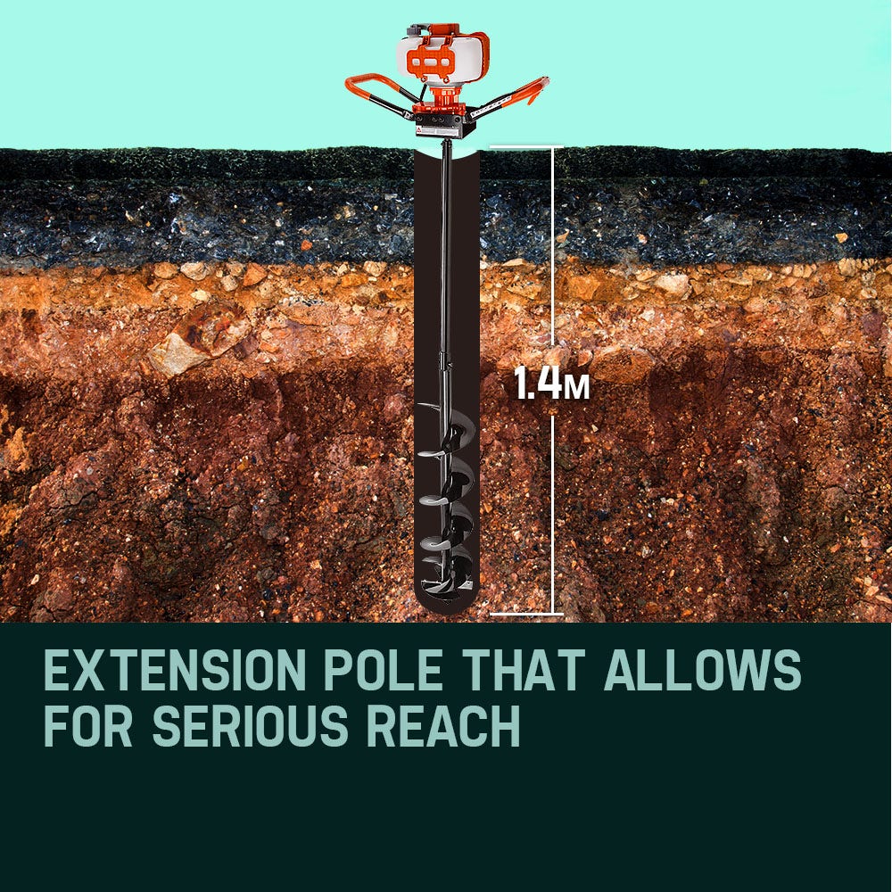 Utilising this unique combination along with a full size commercial straight drive, large capacity fuel tank and high tensile gear set, durability and reliability are second to none. Time to throw away your old shovel and become the master of holes.