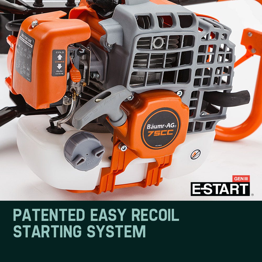 As part of Baumr’s latest series, this digger features our exclusive high output 75cc powerhouse which not only delivers more hp than outdated 82cc engines, but also keeps your auger at speed with it's unique hi-torque design. The pro-series easily conquers your commercial and industrial digging needs!