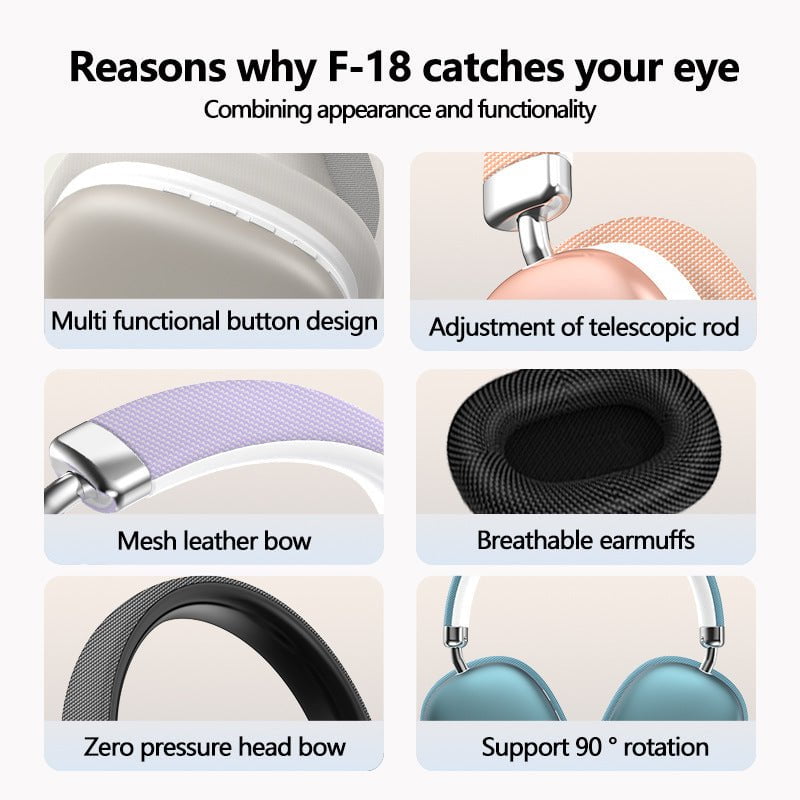 F18 Wireless Bluetooth Headphones - Over-Ear, Deep Bass, Foldable, Long Battery Life