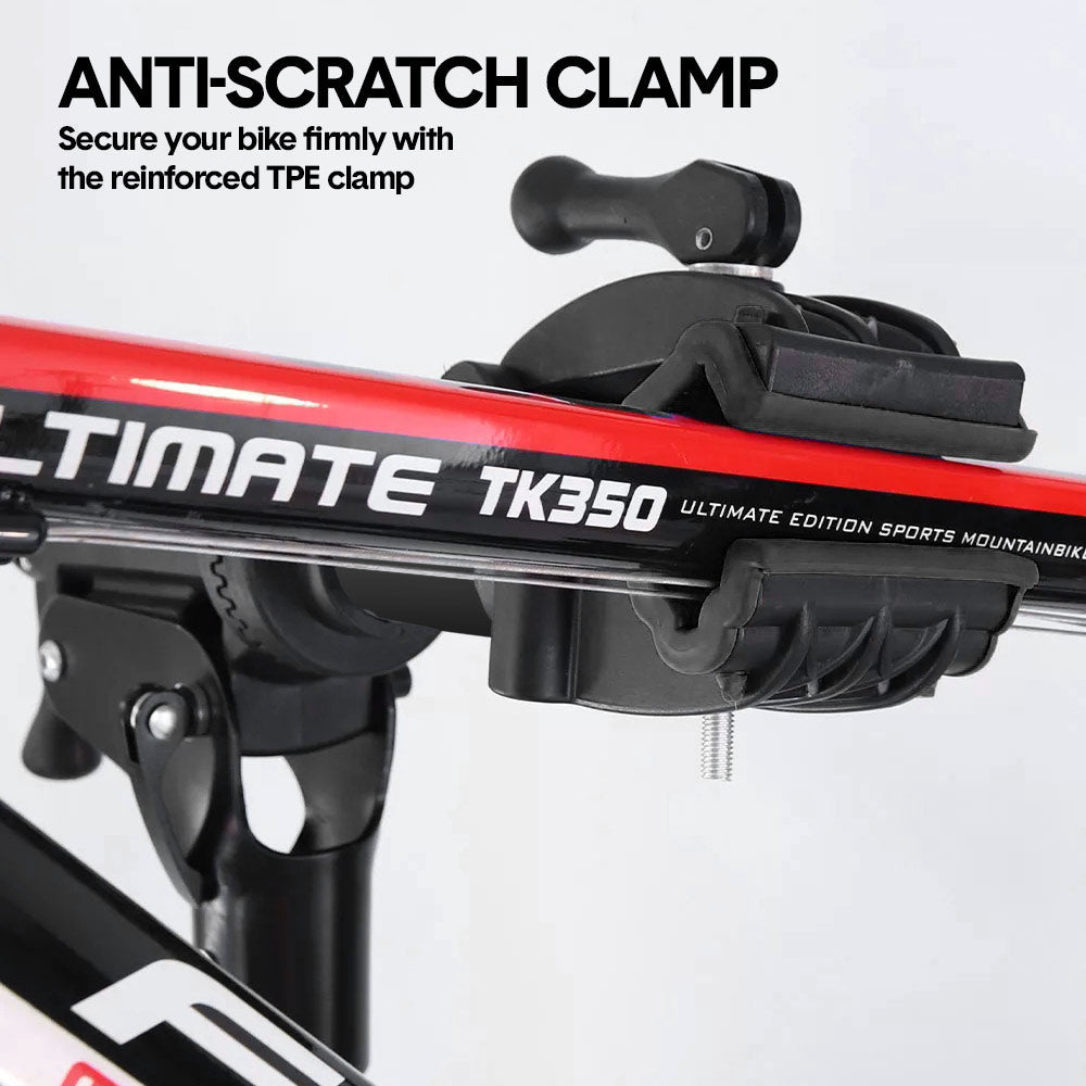 - 360 Rotating: The clamp head can rotate a full 360 degrees, allowing you to lock your bike in any position for easy access to all components, which is specially ideal for repairing derailleurs, cranks, or wheel alignments. The clamp is lined with thick rubber padding to prevent scratches and damage to your bicycle frame.