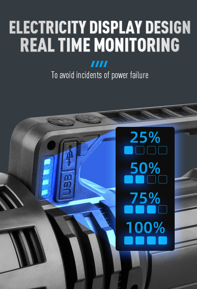 Equip yourself with the ultimate lighting tool. This Powerful LED Searchlight provides the brightness, range, and reliability you need to tackle any situation. Order yours today and experience the difference!