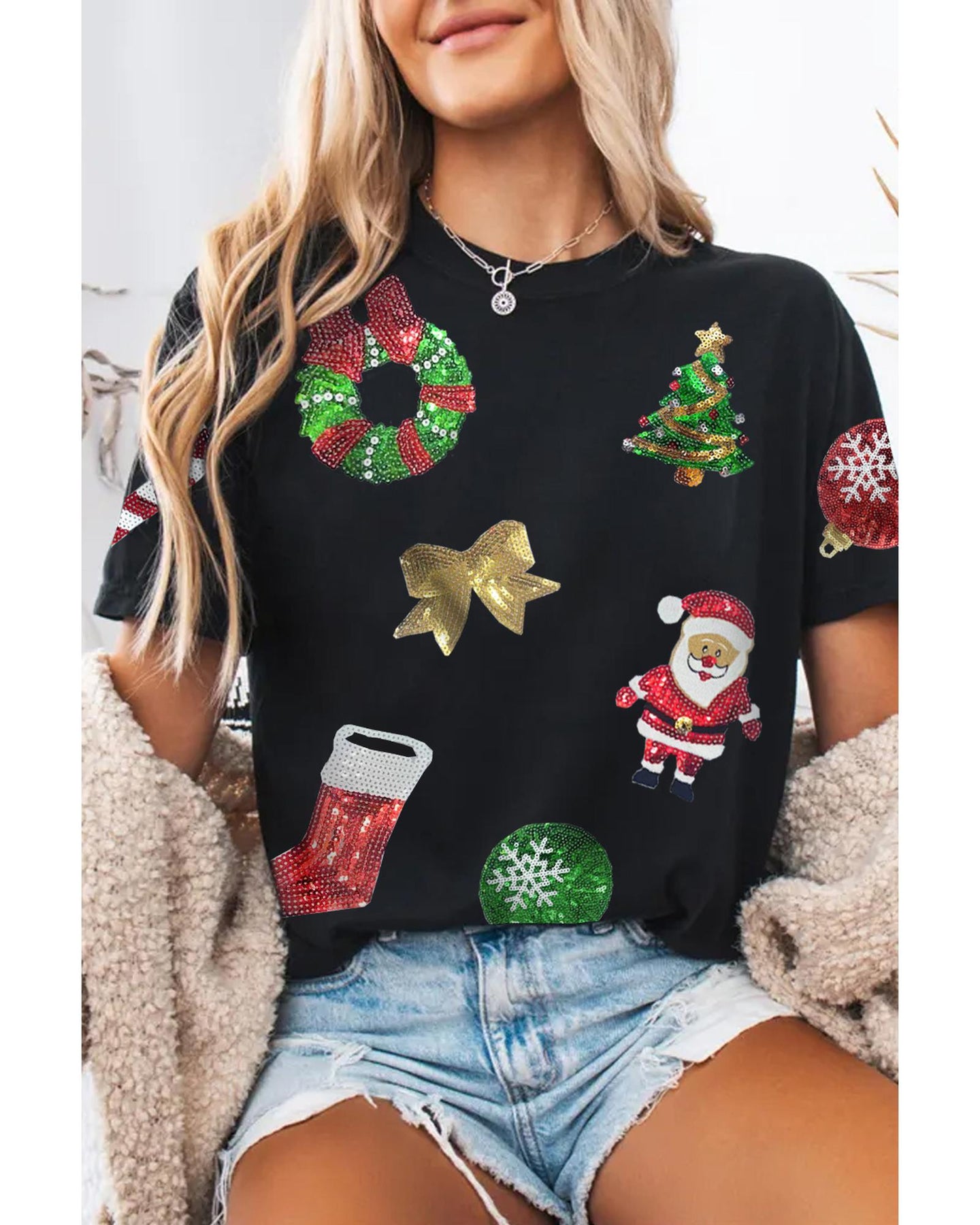 - Sequin embellished tee for a festive sparkle
