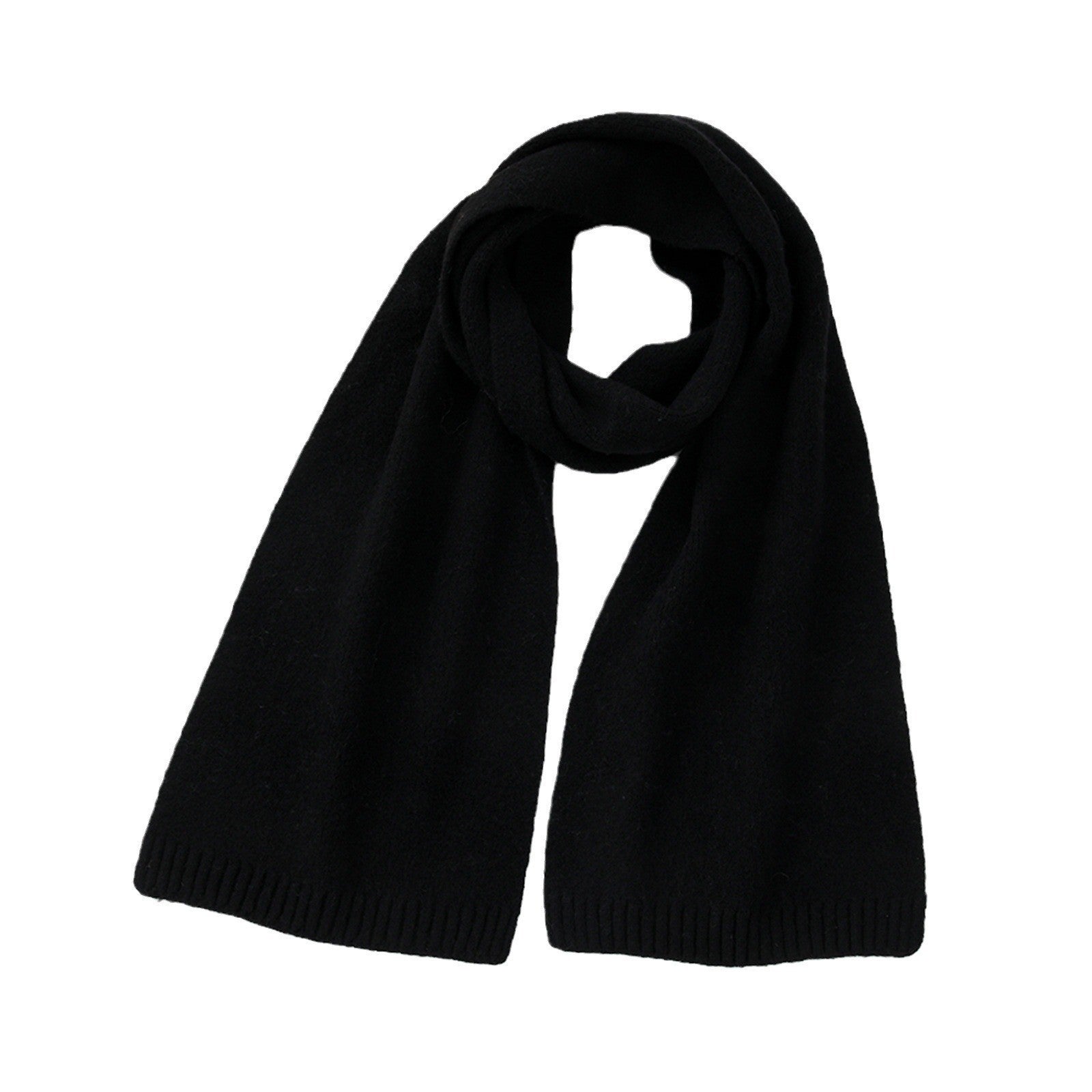 Black Soft Wool-Blend Solid Color Knit Scarf for Women - Cozy Faux Cashmere Shawl