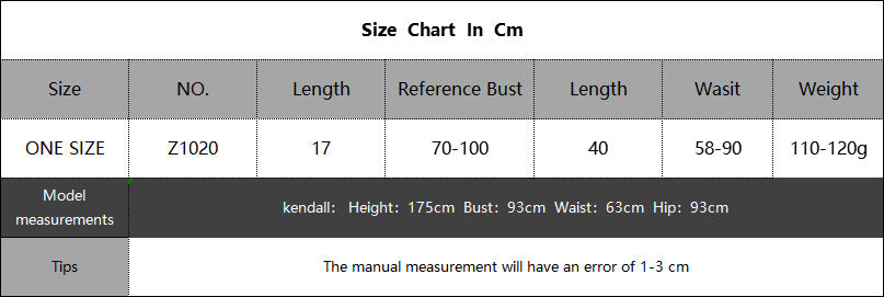 Manual measurements may have a slight variation of 1–3 cm due to differences in measurement methods. Please refer to the size chart and consider your body dimensions before purchasing.