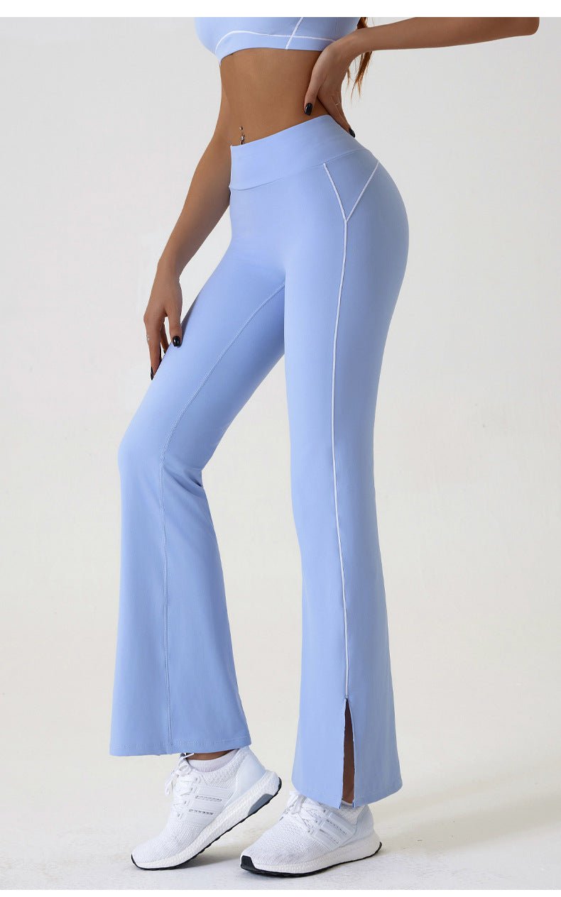 - Flattering high-waisted design with a flared bottom for full range of motion.