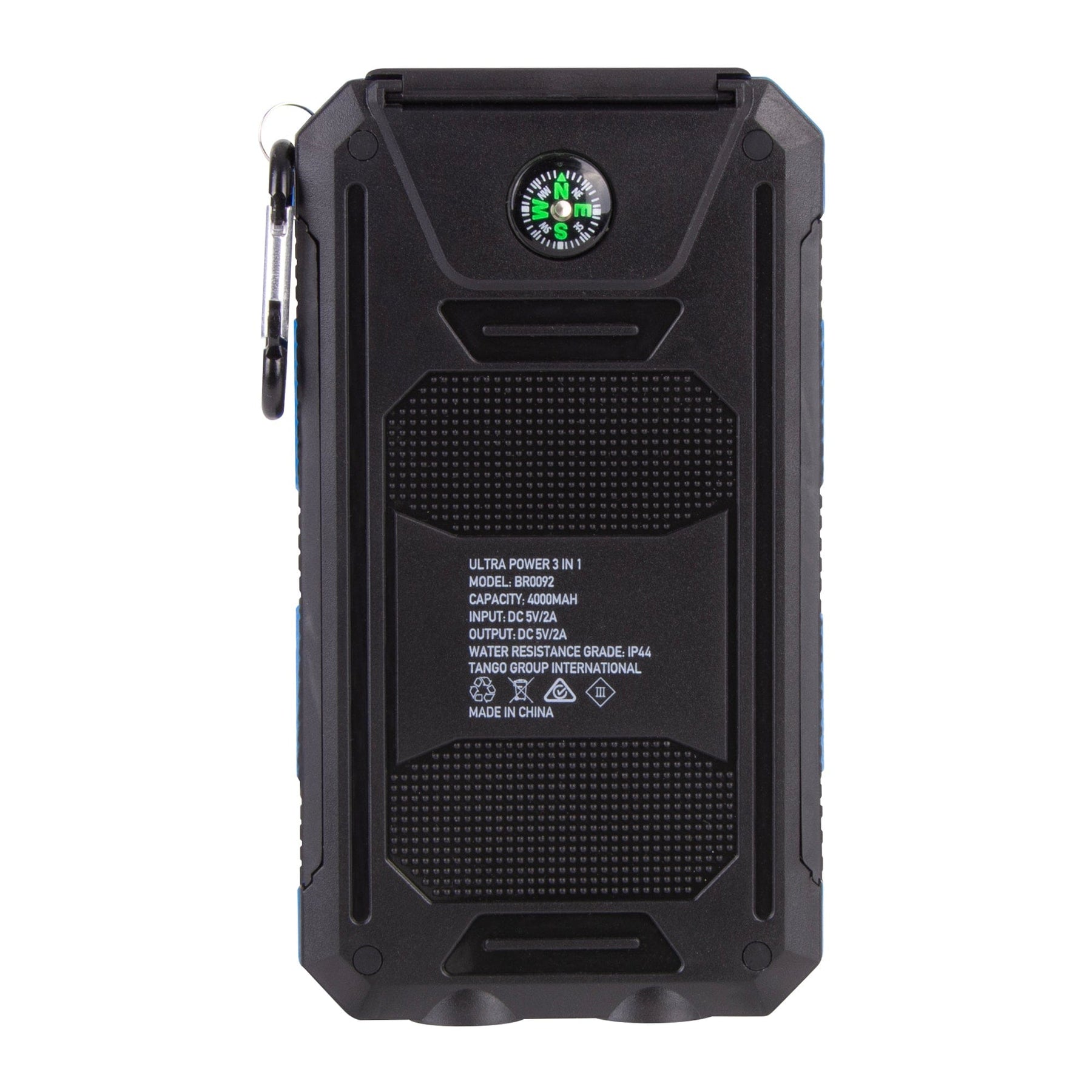 The Ultra Power 3 in 1 combines 3 "must have' products in the one device: solar powered power bank. torch and compass.