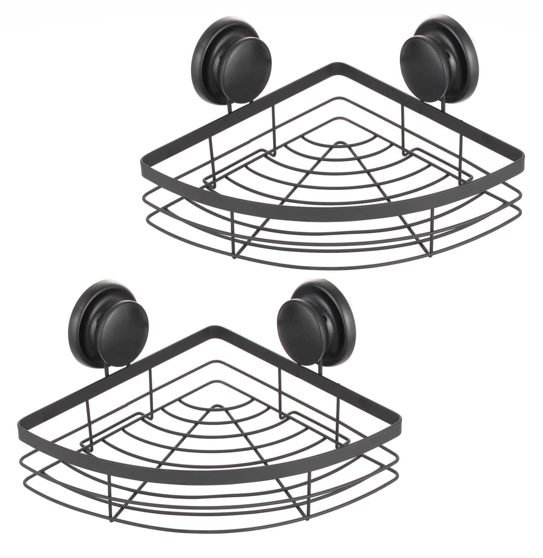 CARLA HOME 2 Pack Round Corner Shower Caddy Shelf Basket Rack with Premium Vacuum Suction Cup No-Drilling for Bathroom and Kitchen