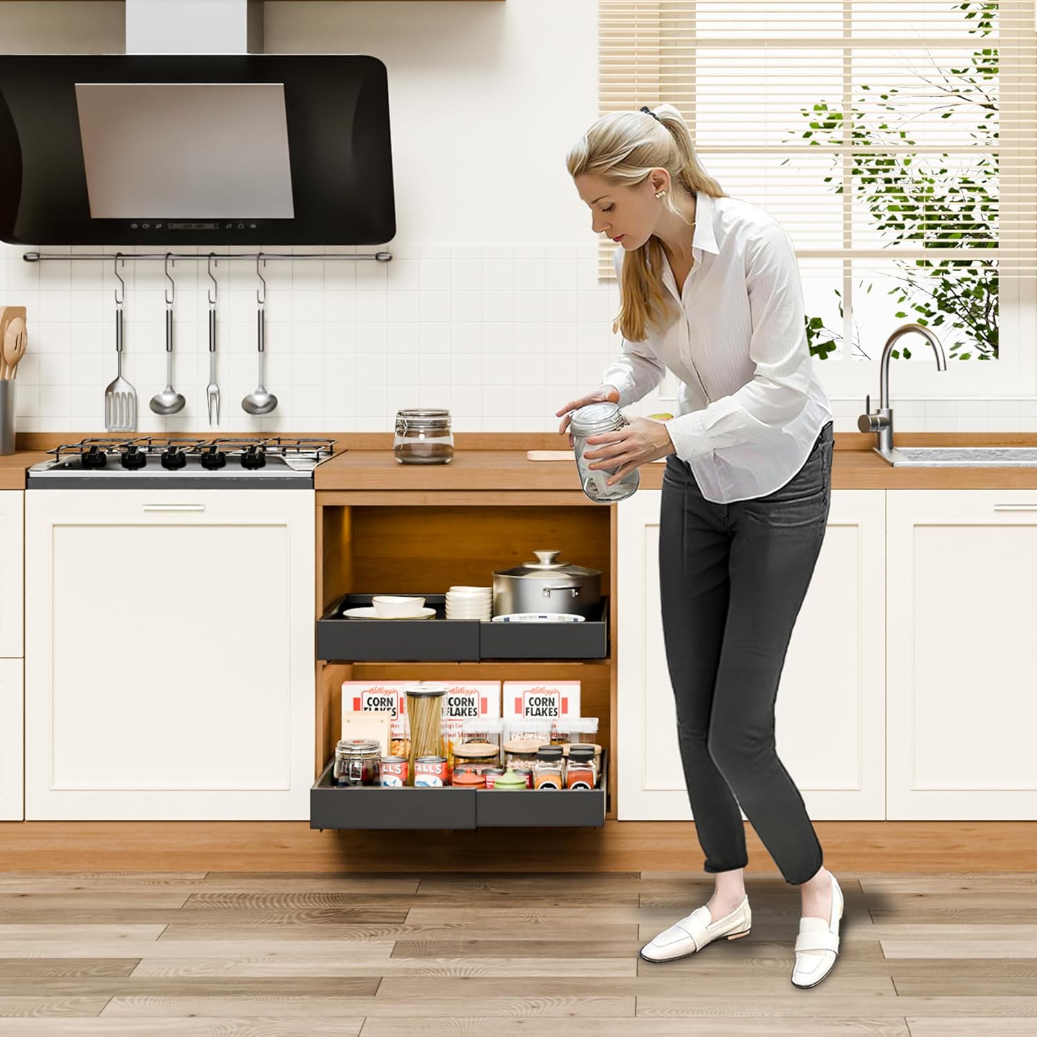 CARLA HOME Pack Pull Out Cabinet Organizer Expandable for Cabinets with Adjustable Slide Out Shelves and Easy Installation (Black)