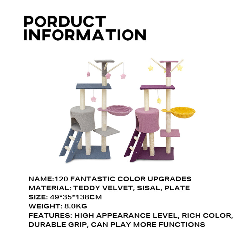 Made of particleboard which is carefully selected, this cat tree has a strong bearing capacity and high stability.