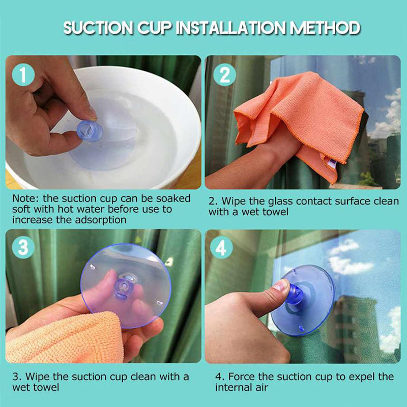 Only suitable for clean and smooth glass or tile surfaces. Ensure suction cups and glass are cleaned and slightly moistened for secure attachment.