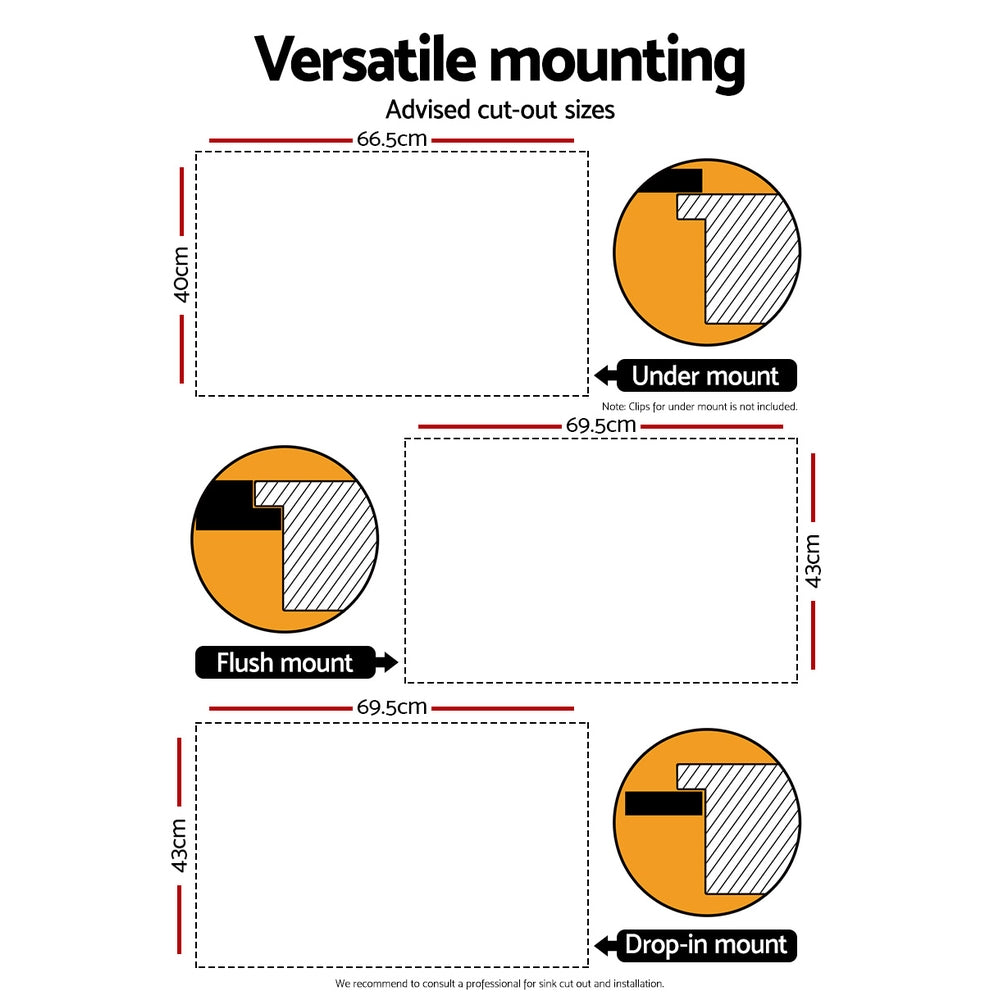 The Cefito Handmade Stainless Steel Sink is built to exacting standards so that you get the very best of quality materials and craftsmanship. It is crafted from heavy-duty food grade 304 stainless steel, unlike others that are made from inferior 201 grade or 304 imitations. Built to be scratch-proof, oil-proof and more importantly, bacteria-free, the silky-smooth satin-coated stainless-steel sink also features an X-flume design for easy drainage, deep and wide bowl for practicality, R10 rounded corners for safety and easy cleaning, eco-friendly anti-condensation paint, and five sound-deadening pads. Suitable for drop-in, flush-mount or under-mount installation, our stainless steel sink should have a definitive place in your uncompromising kitchen.