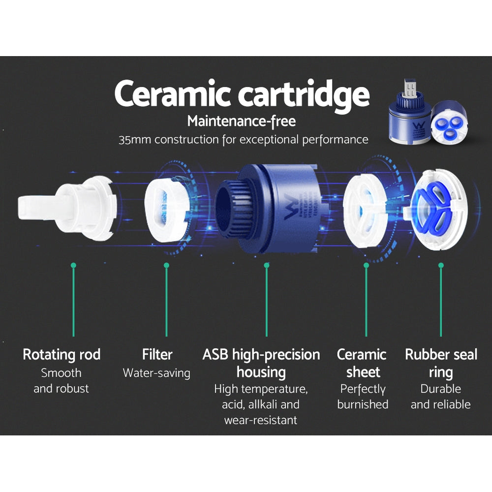 For a perfect mix of the right water temperature, our Shower Taps are simply convenient to use. The solid brass construction make this ensemble absolutely smooth and durable with a drip-free 35mm ceramic cartridge to prevent leakages. The brilliante matt black finish actually comprises a multi-layer finishing process with zinc, nickel and brass plating. The taps are marked as hot and cold markings for hassle-free use. Not least, the shower taps carry a WaterMark certification and comply with Australian standard AS/NZS 3718 for total peace of mind installation and use.
