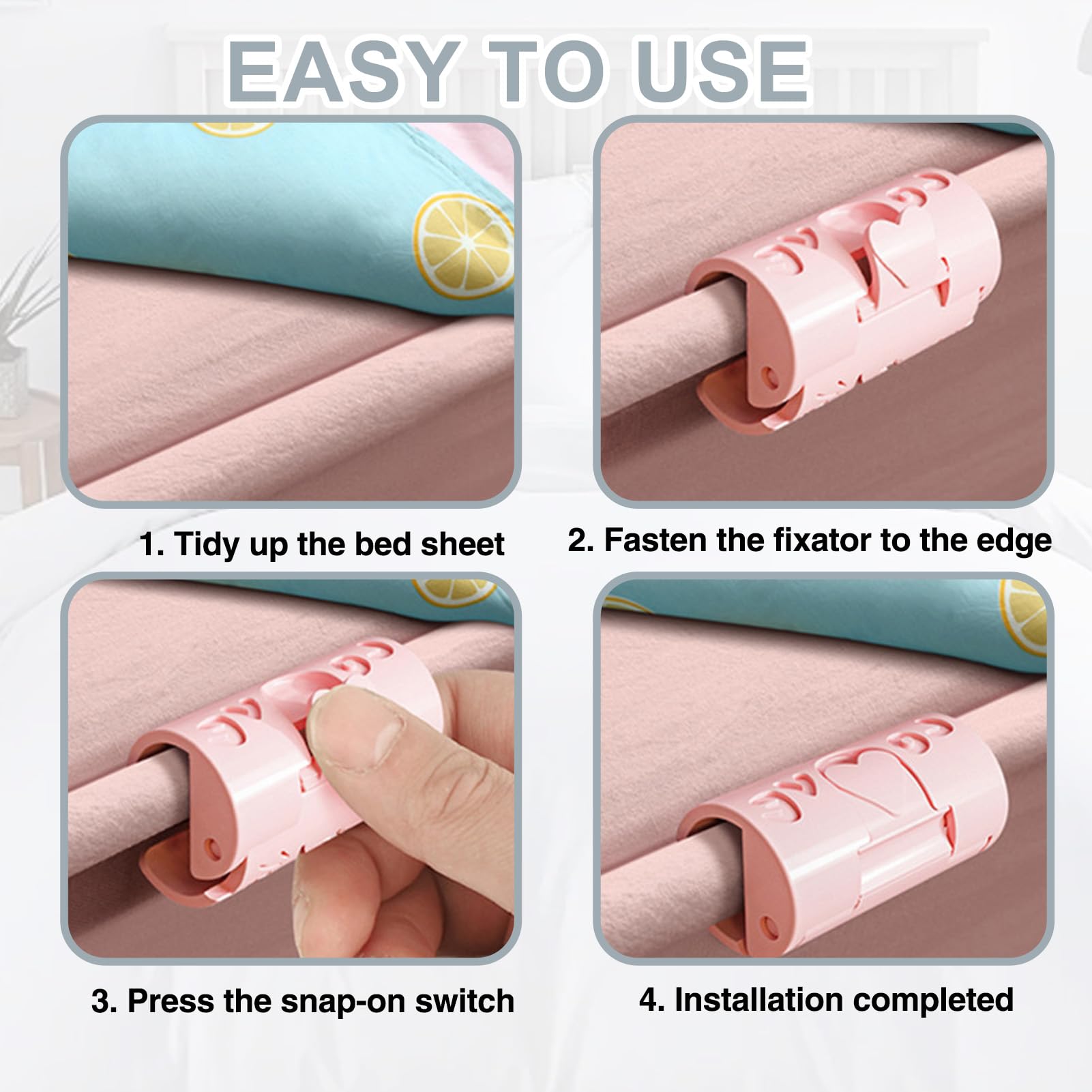 Safe NeedleFree Our sheet clips have a needlefree design, which does not damage the duvet compared with traditional sheet clips, providing safety for you and your children.