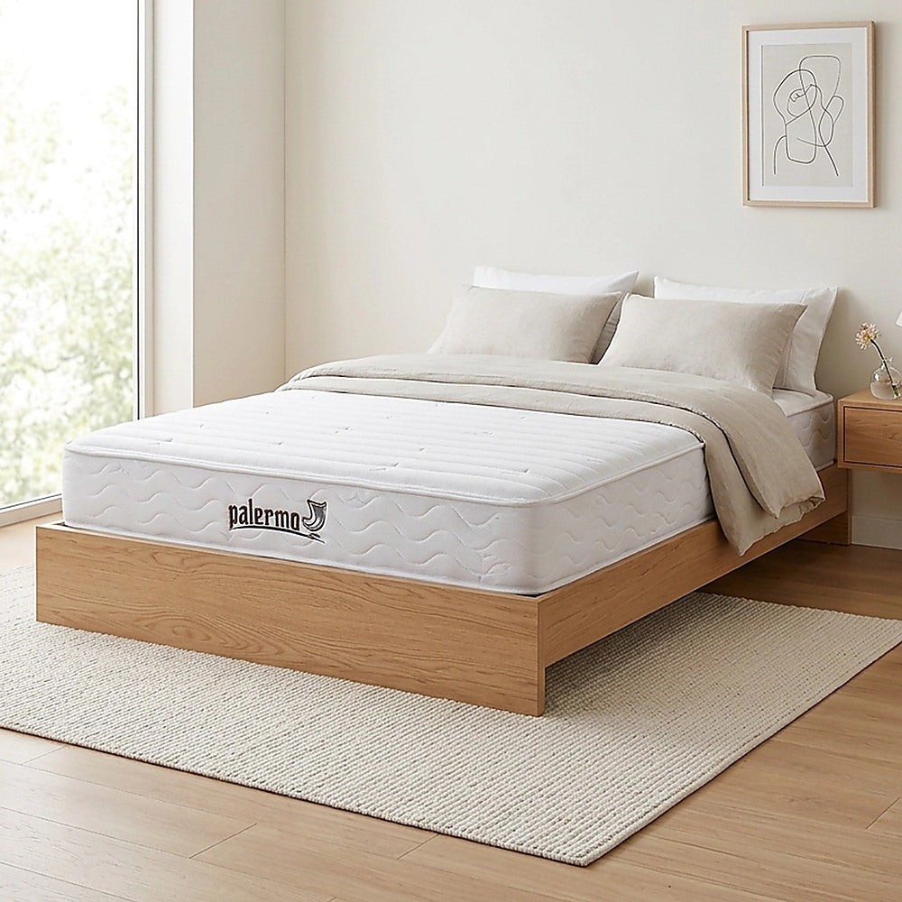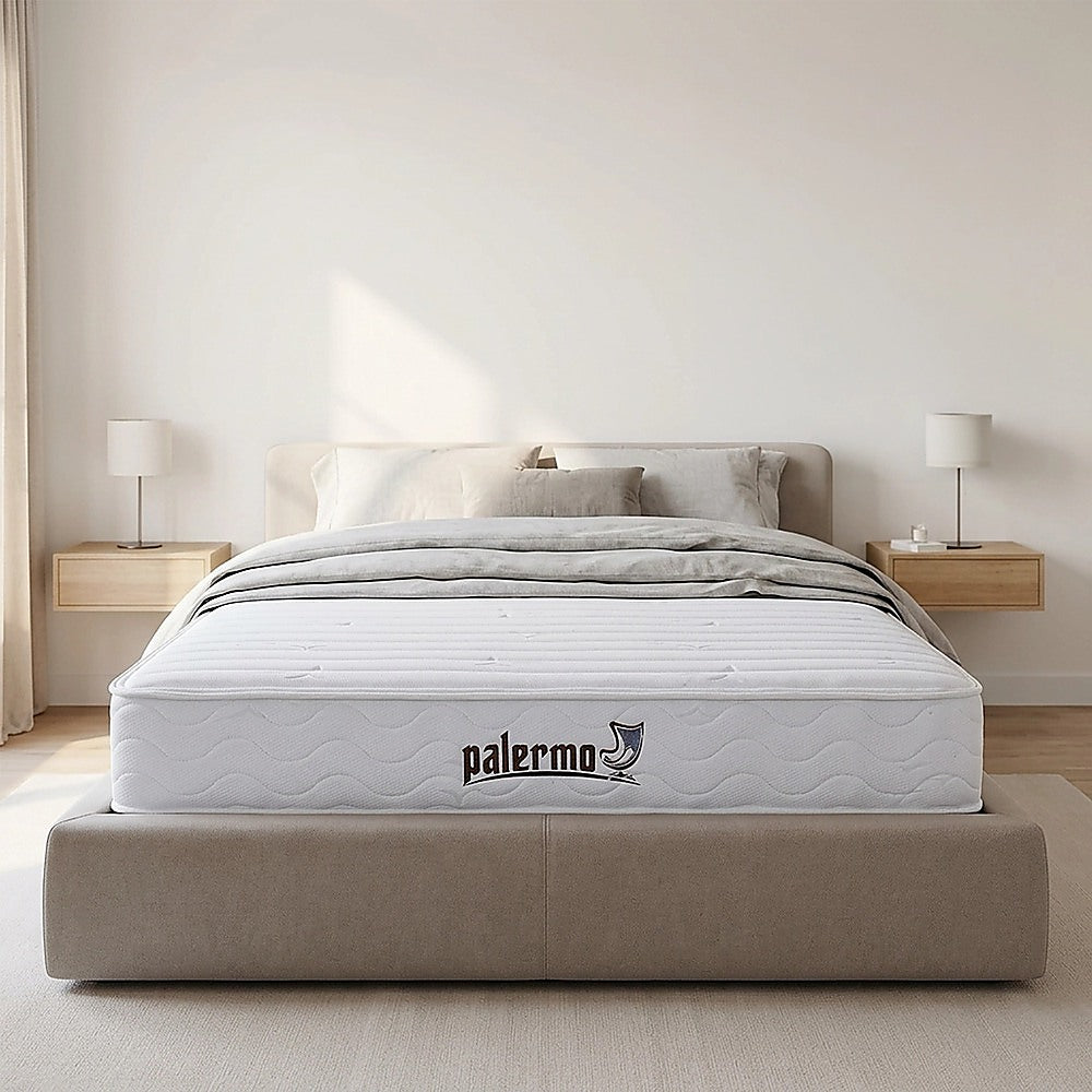 Sleep in comfort with the Palermo Queen Contour 20cm Mattress, designed with CertiPUR-US certified foam and 7.5 (19cm) 14-gauge pocket springs for lasting support. The individually encased coils contour to your body for even weight distribution and pressure relief, while the quilted foam layers on top and bottom provide a soft, cushioned feel that reduces coil sensation.