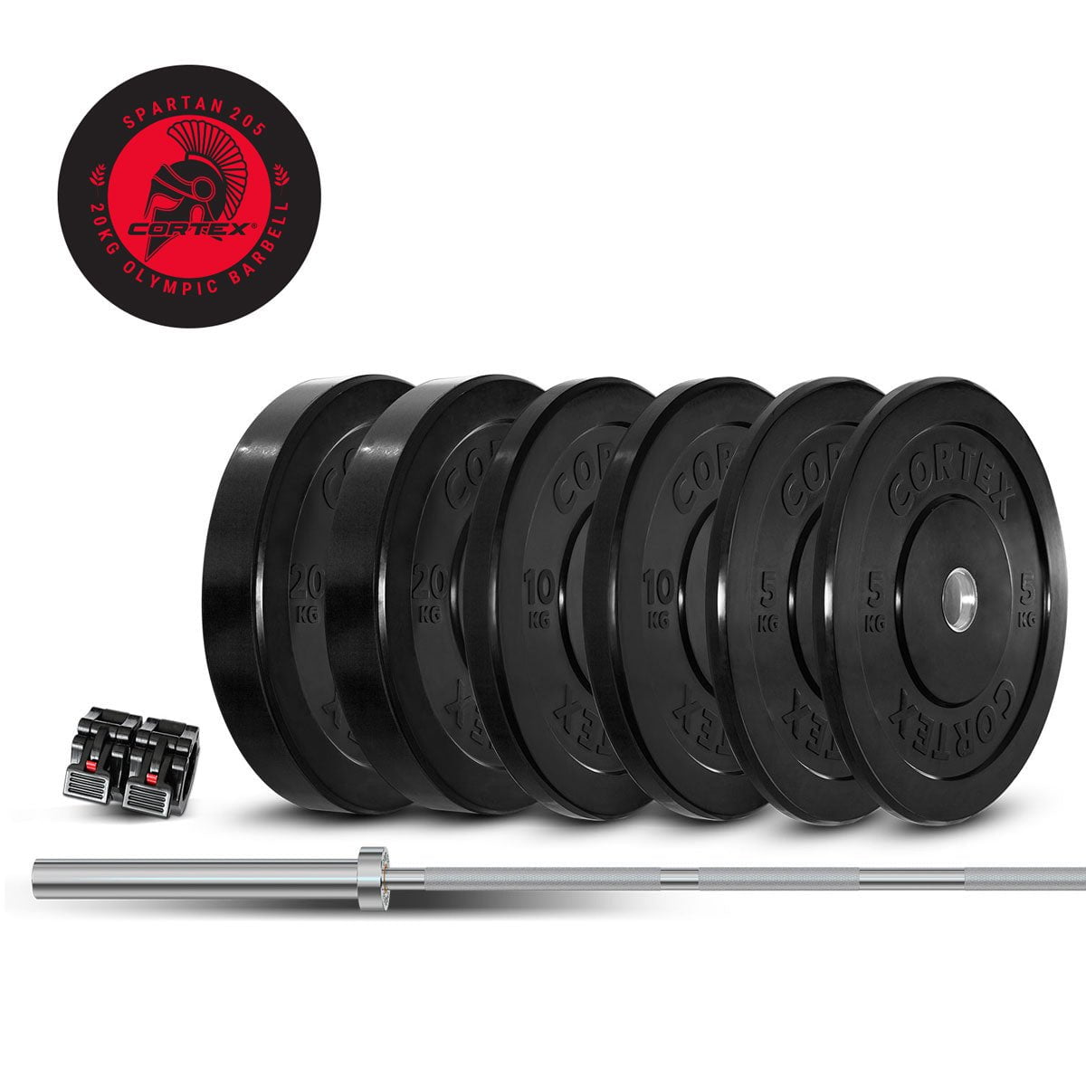 CORTEX 90kg Black Series Bumper Plate Set with SPARTAN205 Barbell