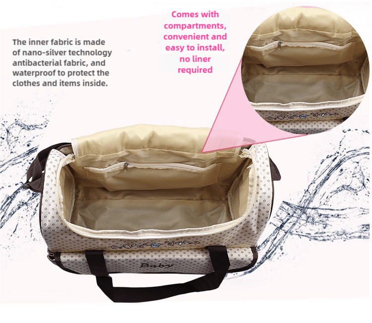 Designed for stylish and practical moms, this 5-piece mommy bag set offers a complete solution for all your baby travel needs. It includes: