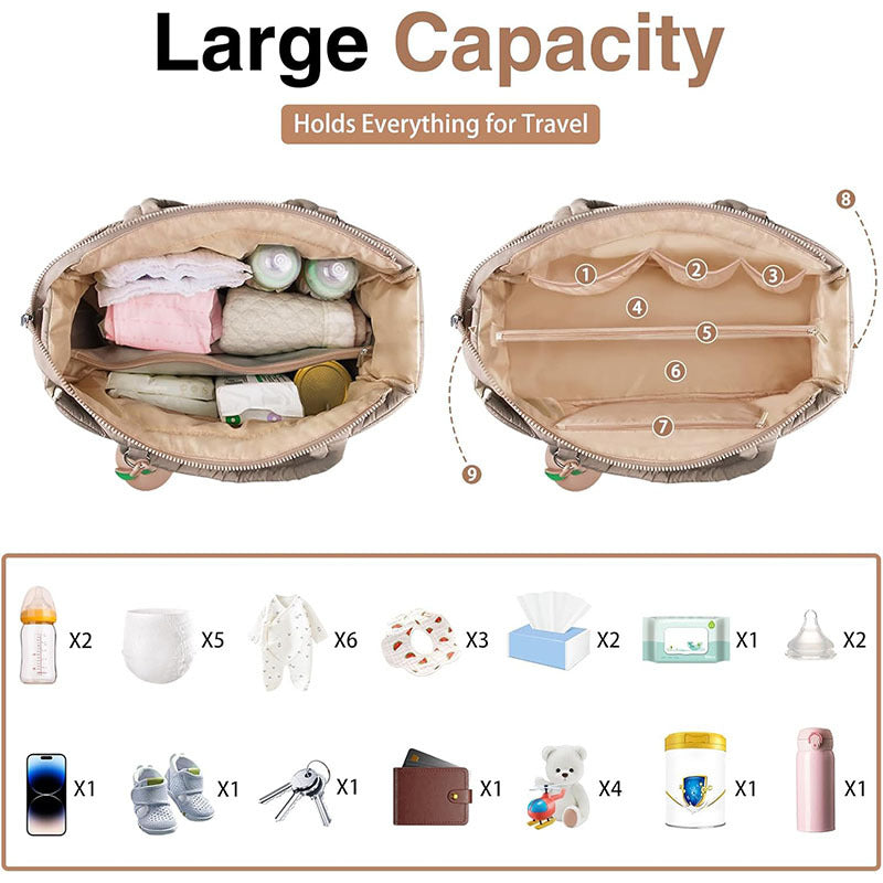 - Stroller Friendly: Easily attachable to a pram or stroller handle using the crossbody strap or by looping the top handles (depending on stroller design).