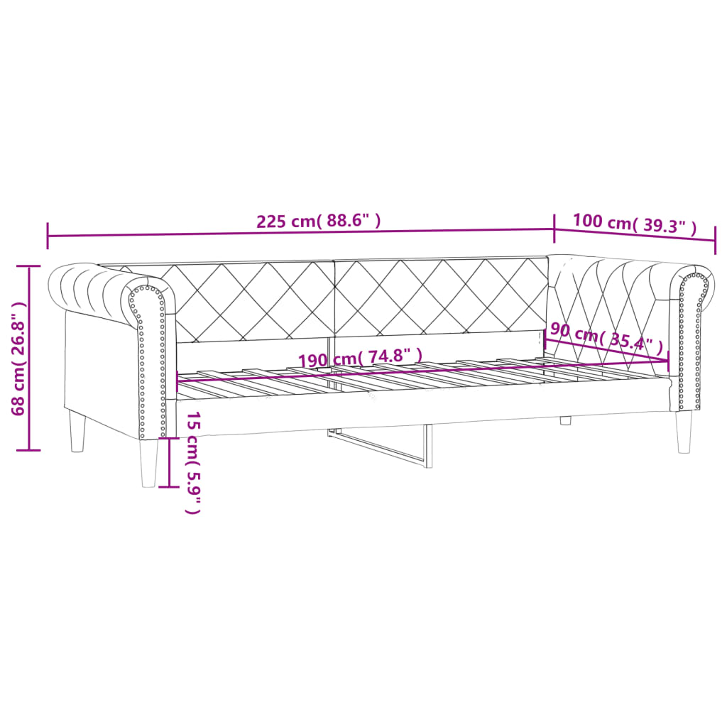 This 2-in-1 day bed, serving as both a sofa and bed, makes a practical and eye-catching addition to your living room or bedroom. Versatile day bed: The sofa bed can be used as a sofa during the day, or as a bed at night to offer a quick solution to accommodate overnight guests.Comfortable experience: The daybed is made of faux leather. It is resistant to stain, making it easy to clean with a damp cloth. The smooth surface also gives a luxurious look and the beauty of real leather. In addition, the backrest and armrests of the guest bed are padded with foam to improve the seating experience.Sturdy and stable frame: The main frame of the sleeper sofa is made of metal and solid wood, making it very sturdy and durable. These plywood slats allow better air circulation to keep the mattress fresher for longer while improving the weight capacity and ensuring stability.Modern design: The couch bed has a modern design that features clean lines, a minimalistic look, as well as natural light, and will add a modern style to your interior! Good to know:A mattress is not included with this bed. We do offer a various selection of mattresses. You can check our shop for a matching mattress.