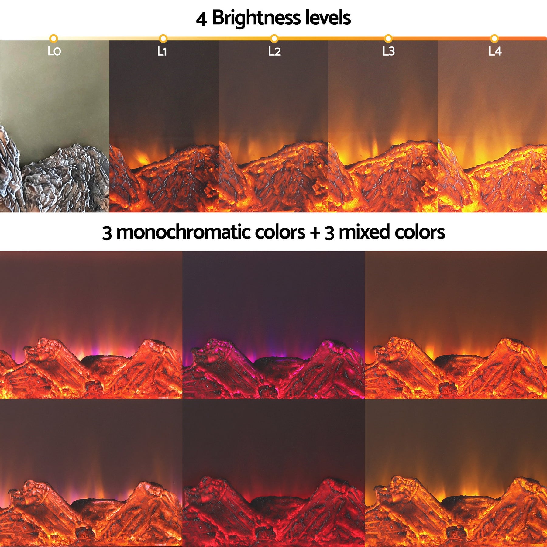 Add modern warmth and ambience to your home with the Devanti Electric Fireplace. This versatile unit can be wall mounted or recessed for a flush, contemporary look. Featuring 6 realistic flame colours and two heating powers (1000W/1800W), it provides both visual appeal and comfortable warmth. Control everything easily with the included remote, digital thermostat, and timer(0-12H). Designed for Australian power outlets and built with safety in mind.