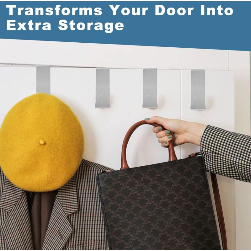 Easy storage, enjoy a tidy life.Over the door hooksBoth ends are available, suitable for 2cm and 4cm wide door slots, close to the door, will not affect the opening and closing of the door.The hooks have enough stability, just hang them on the door.