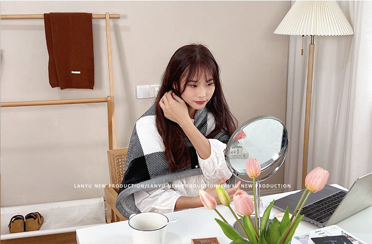 Double-Sided Geometric & Plush Throw Blanket - Warm 70x100cm Multi-Use Wrap
