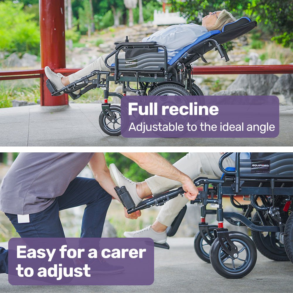 This Equipmed electric wheelchair has many features built-in such as the Anti-tip Wheels. The high-quality frame means that it can accommodate a 130kg rider weight.