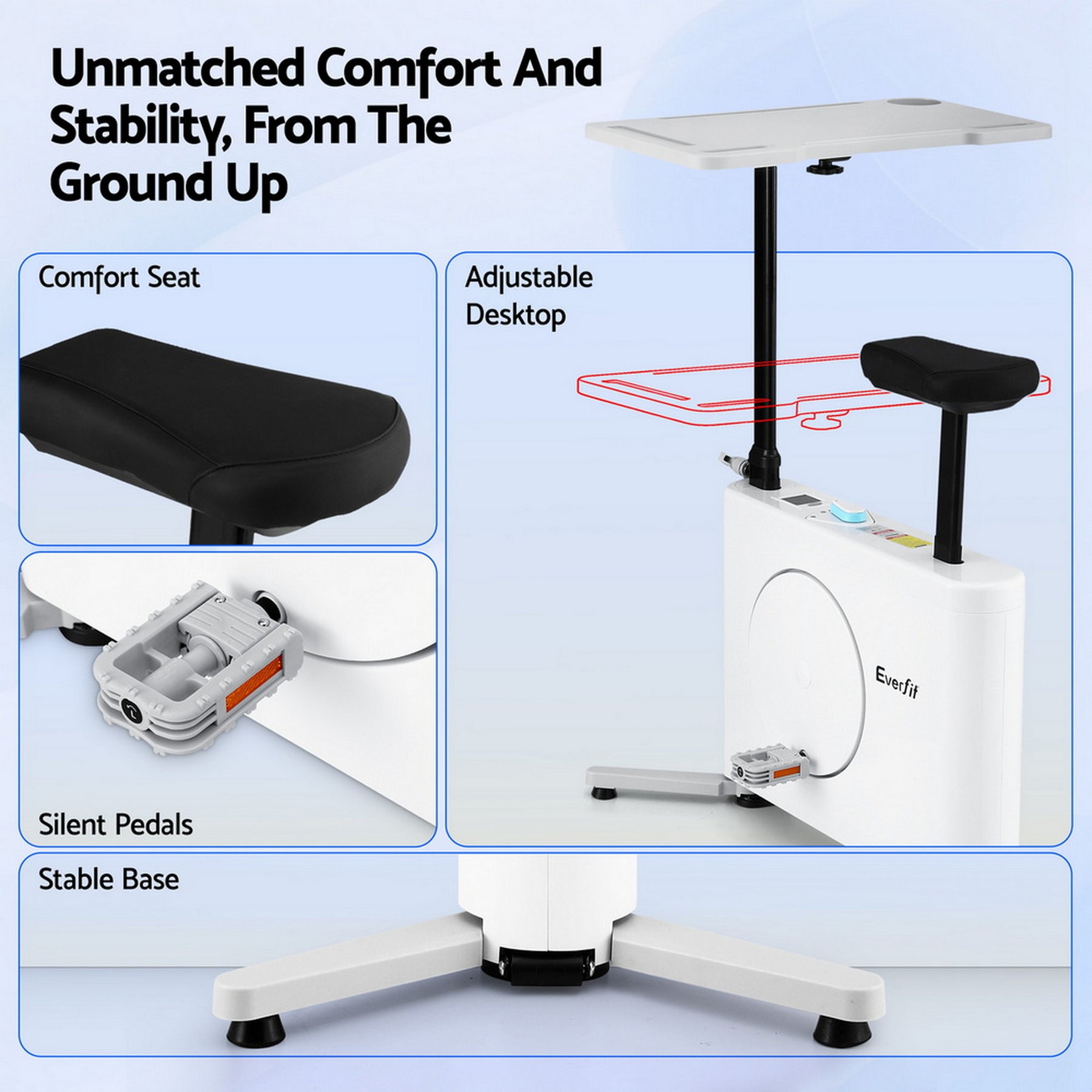 Tired of sitting all day? Meet your new All-in-One Workstation Bike! Perfect for Aussie homes, this 3-in-1 desk bike lets you work, study or stream while you pedal. Easily adjust the ergonomic seat and large desktop for ultimate comfort. With 8-level magnetic resistance and a quiet ride, it's ideal for home offices or apartments. The digital monitor tracks your stats, while built-in holders keep your phone and drink handy. Fight sedentariness and save space with this versatile bike!