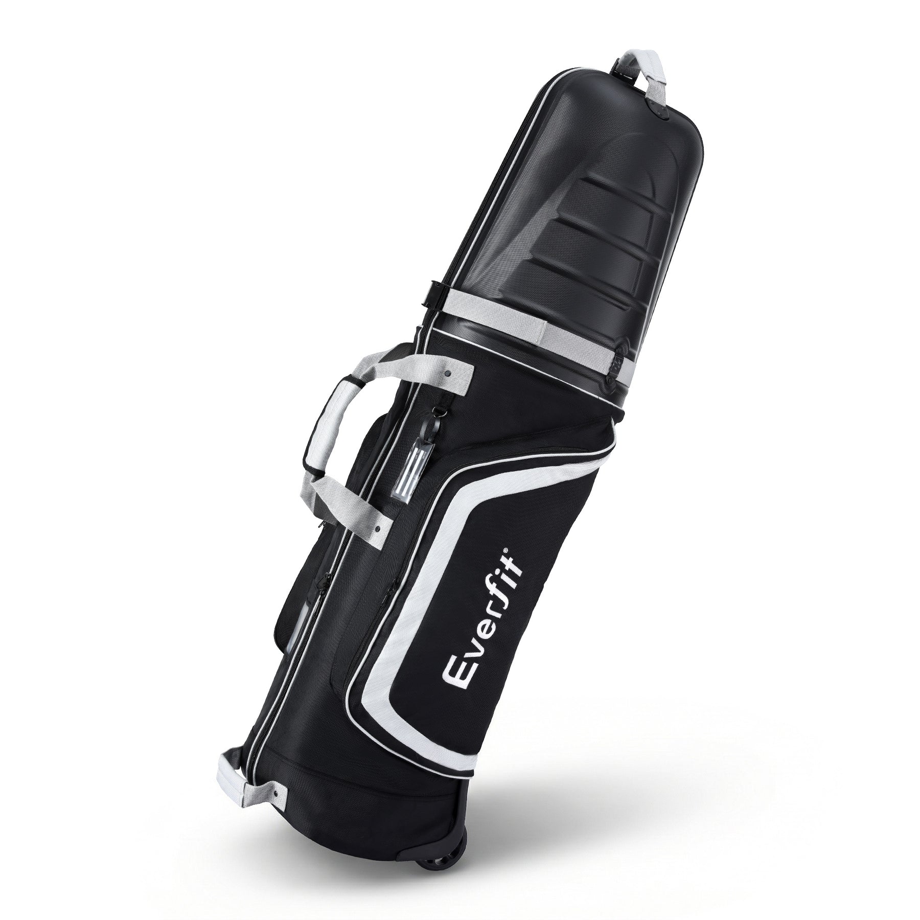 Introducing our versatile Everfit Golf Bag, designed for travel ease with a semi-hard shell and two smooth rollers. Features include a padded handle, hard case top for protection, and ample storage. Ideal for both outdoor training and airline use.