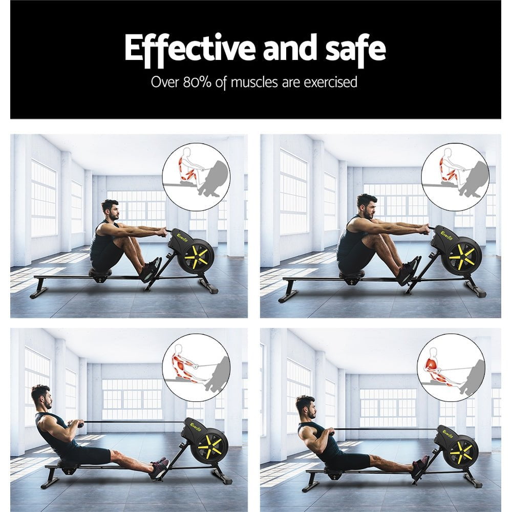 If working out is your favourite thing to do, then this Everfit Rowing Machine is just the thing for you. Featuring 8 resistance levels utilizing an air resistance system, this Rowing Machine is ideal for working large muscle groups at your back, legs, arms and abs as well as providing great cardios at the same time. The wheel glide rail system is made of durable steel while the moulded seat and adjustable footrest lets you work out safely and comfortably. You can easily check on your workout rate with the large LCD display to ensure desired results at the right pace. With a weight capacity of 150kg, any gym junkie can use this Everfit Rowing Machine to his or her body's content both day and night (it works very silently) without stirring up the neighbours. And that's worth pushing it to your limits.